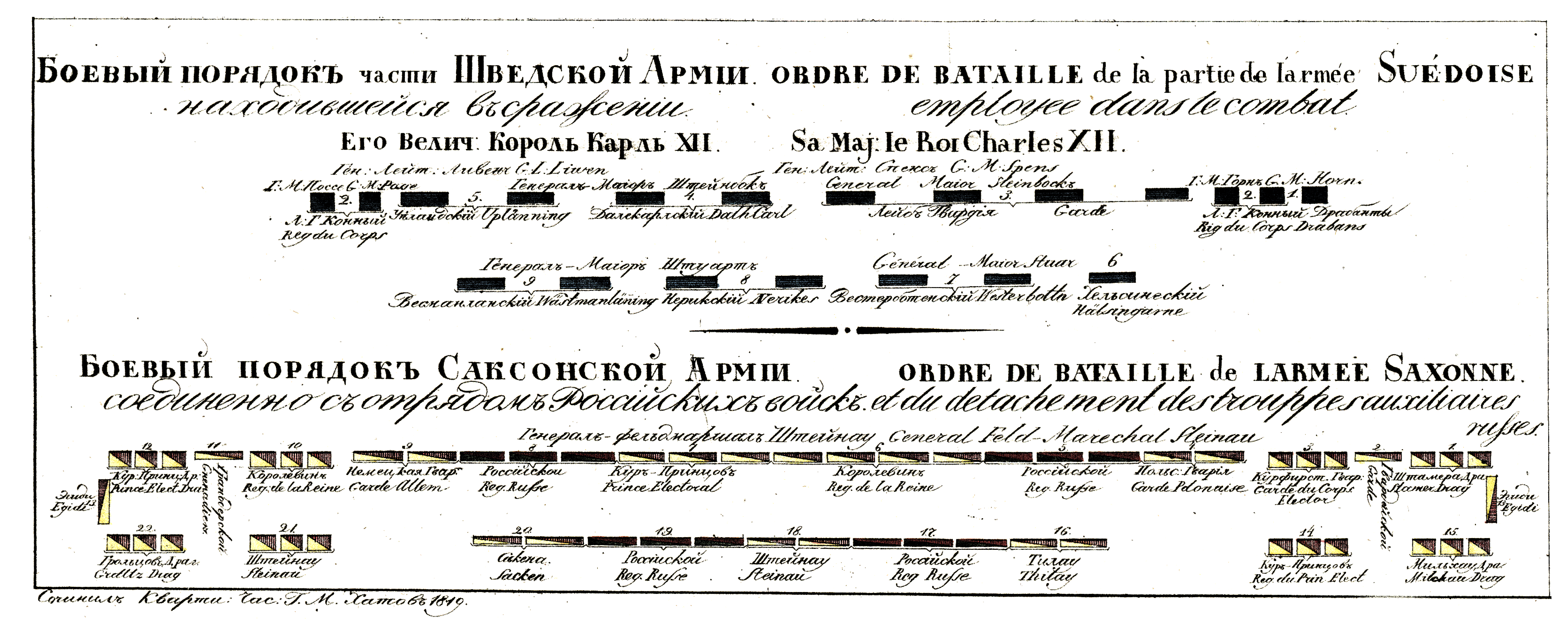 Боевой порядок части Шведской Армии, находившейся в сражении. Боевой порядок Саксонской Армии, соединенно с отрядом Российских войск