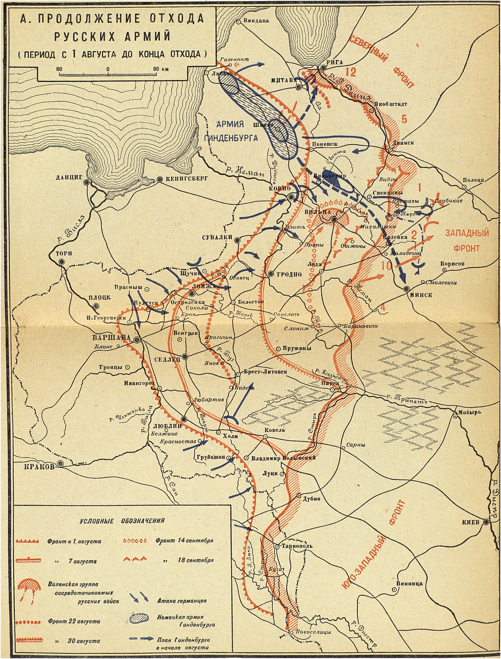 Кампания 1915 года. Русский театр. Отход русских армий. А. Продолжение отхода русских армий (период с 1 августа до конца отхода).