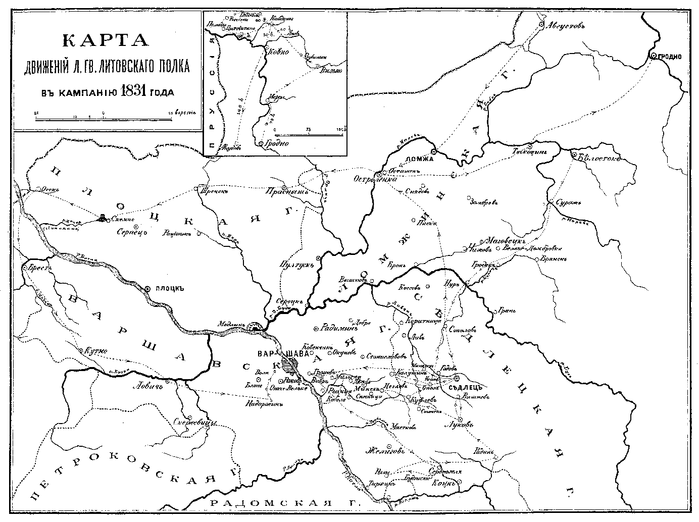 Карта движений Лейб-гвардии Литовского полка в кампанию 1831 года