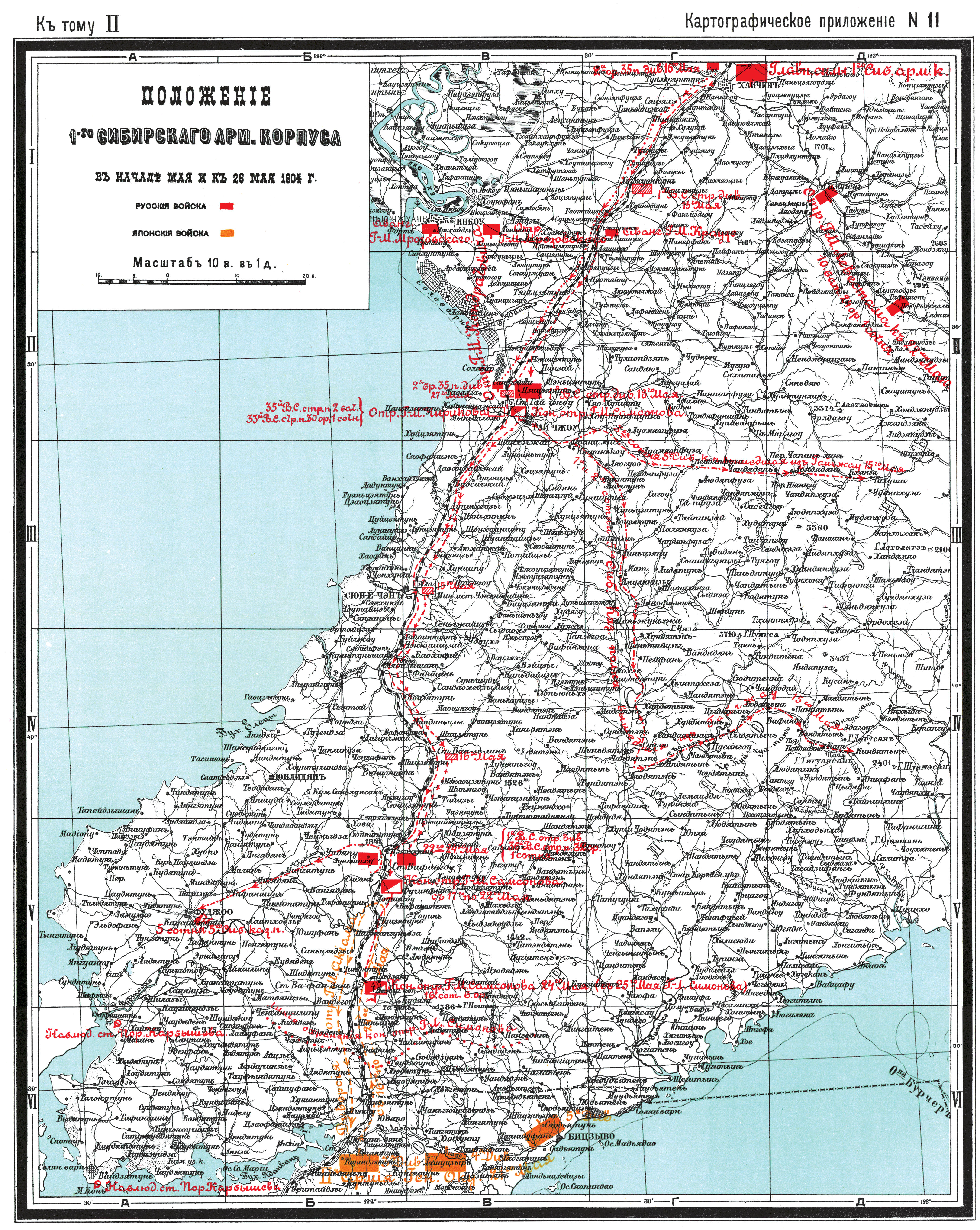 Положение 1 Сибирского армейского корпуса в начале мая и к 26 мая 1904 года