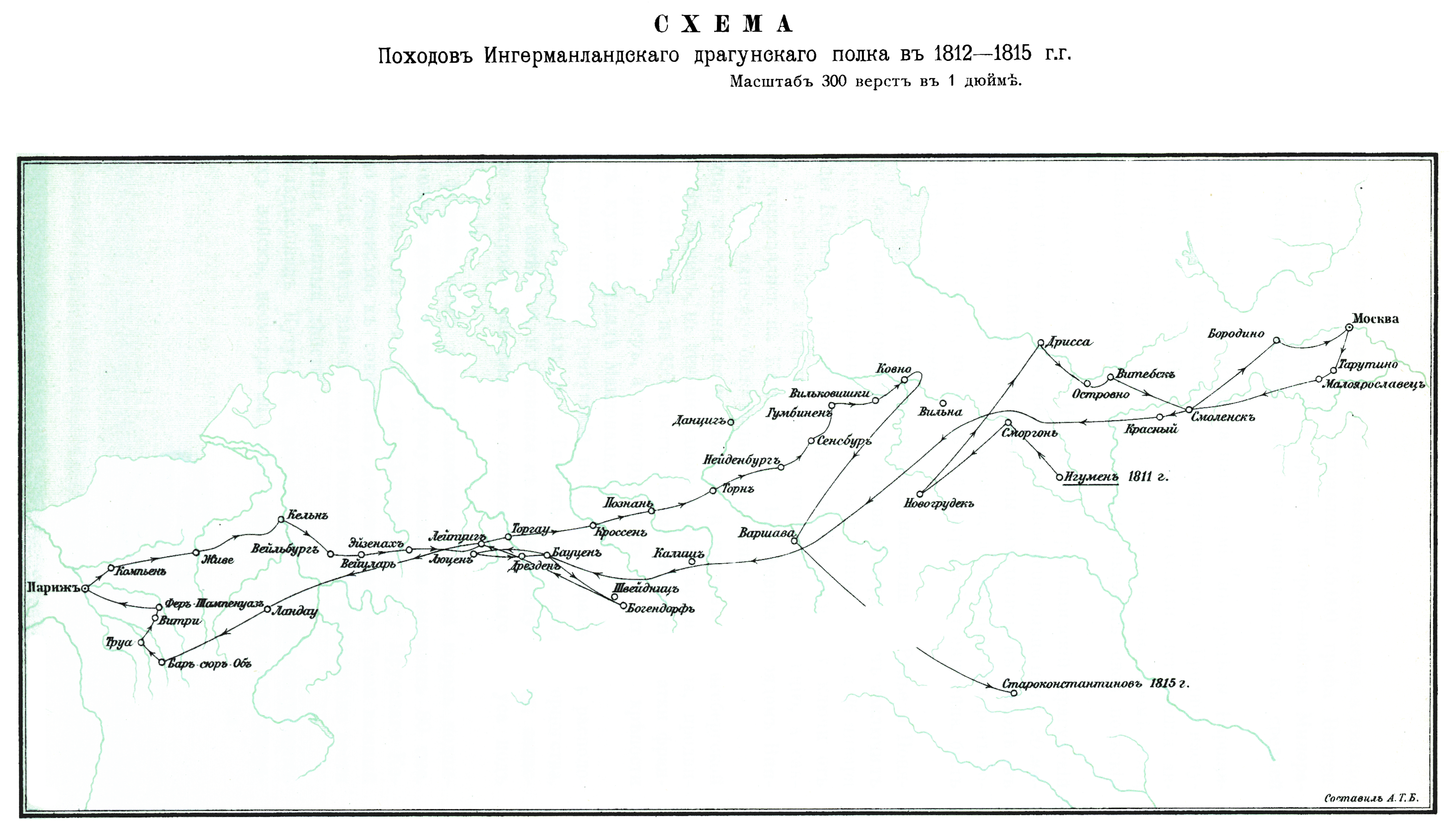 Схема походов Ингерманландского драгунского полка в 1812-1815 годы