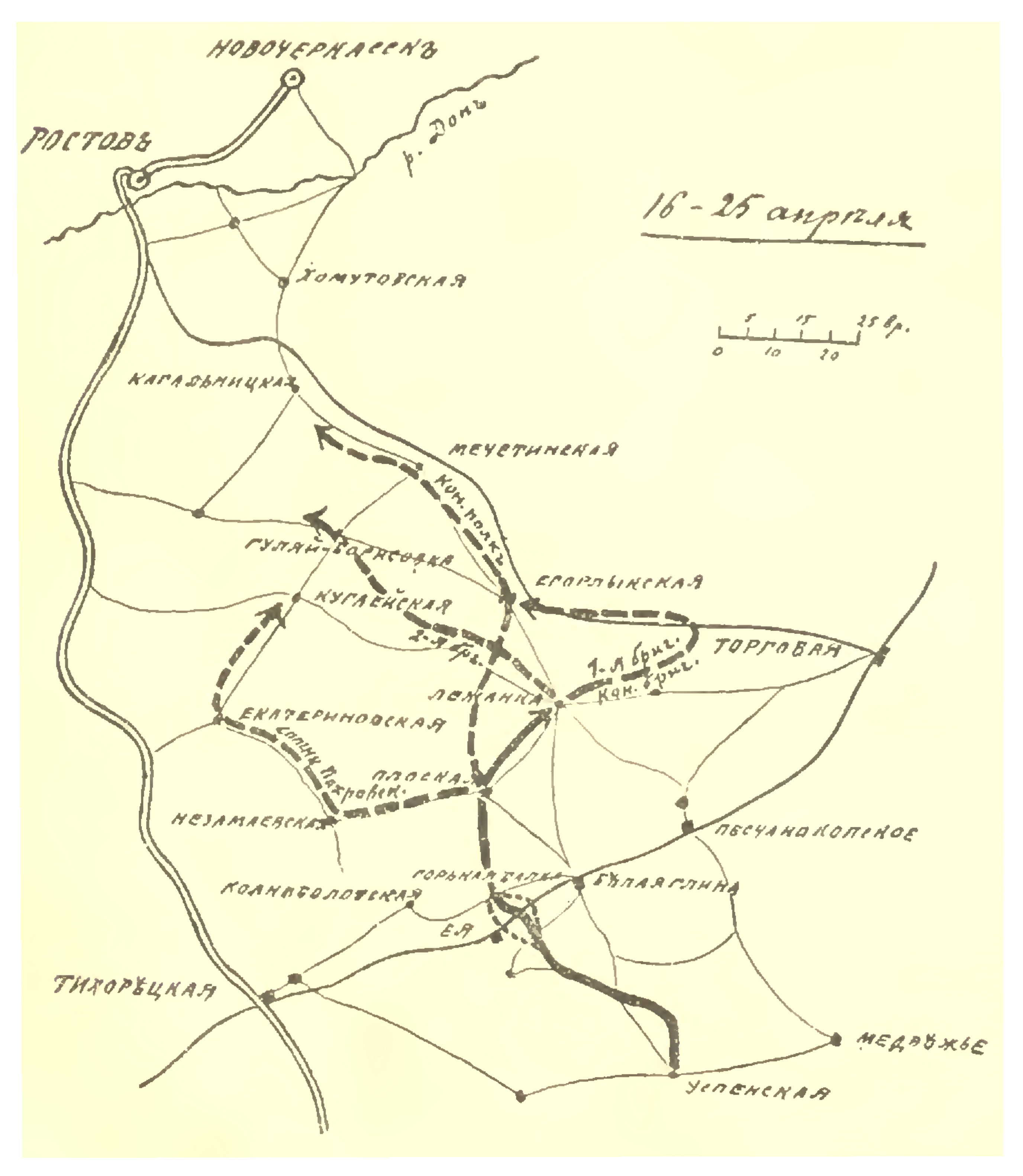 Передвижение армии на Дону 16-25 апреля 1918 года
