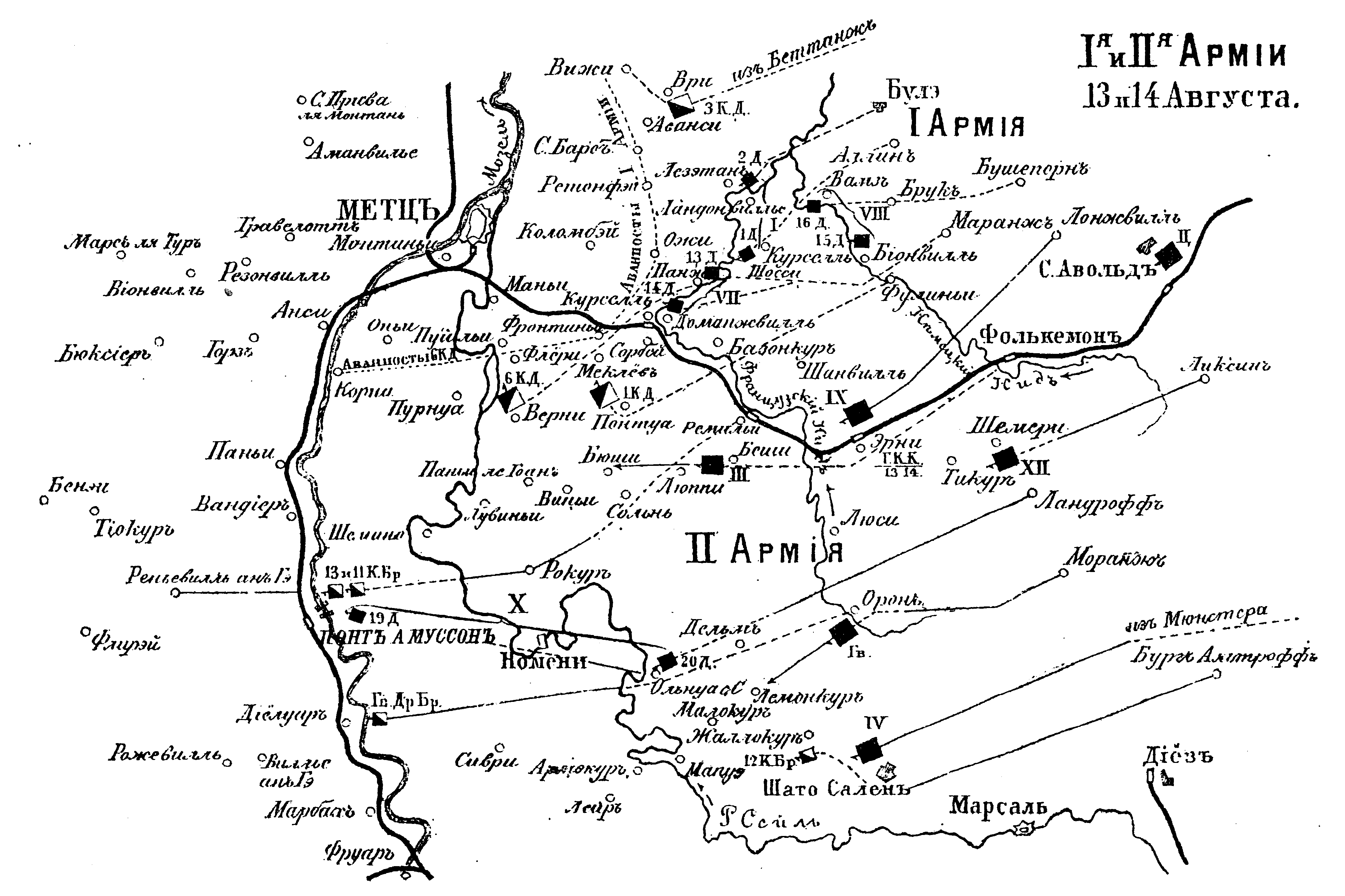 I-ая и II-ая Армия 13 и 14 августа 1870 года