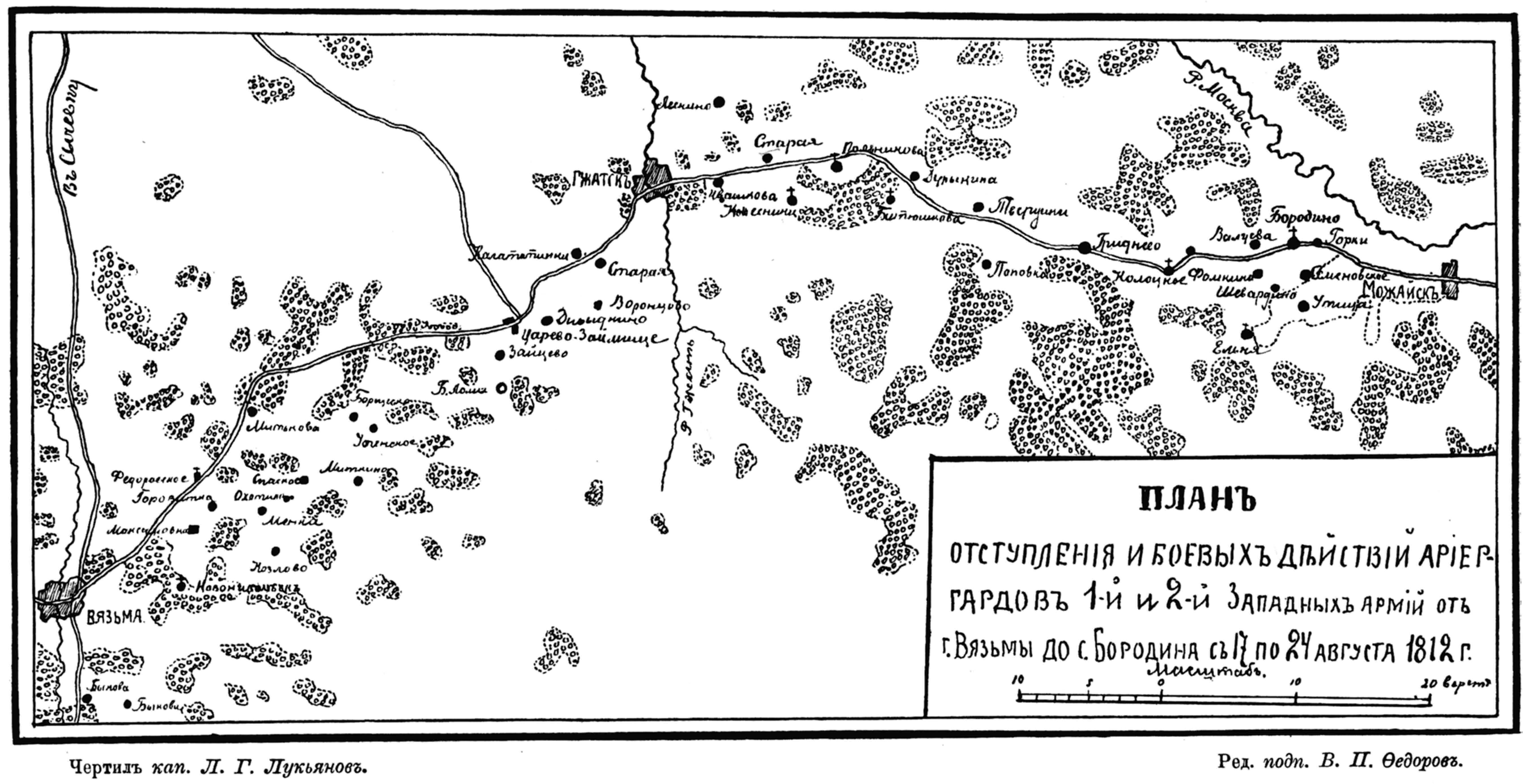 Отступление и боевые действия арьергардов 1 и 2 Западных армий от города Вязьмы до села Бородина с 17 по 24 августа 1812 года