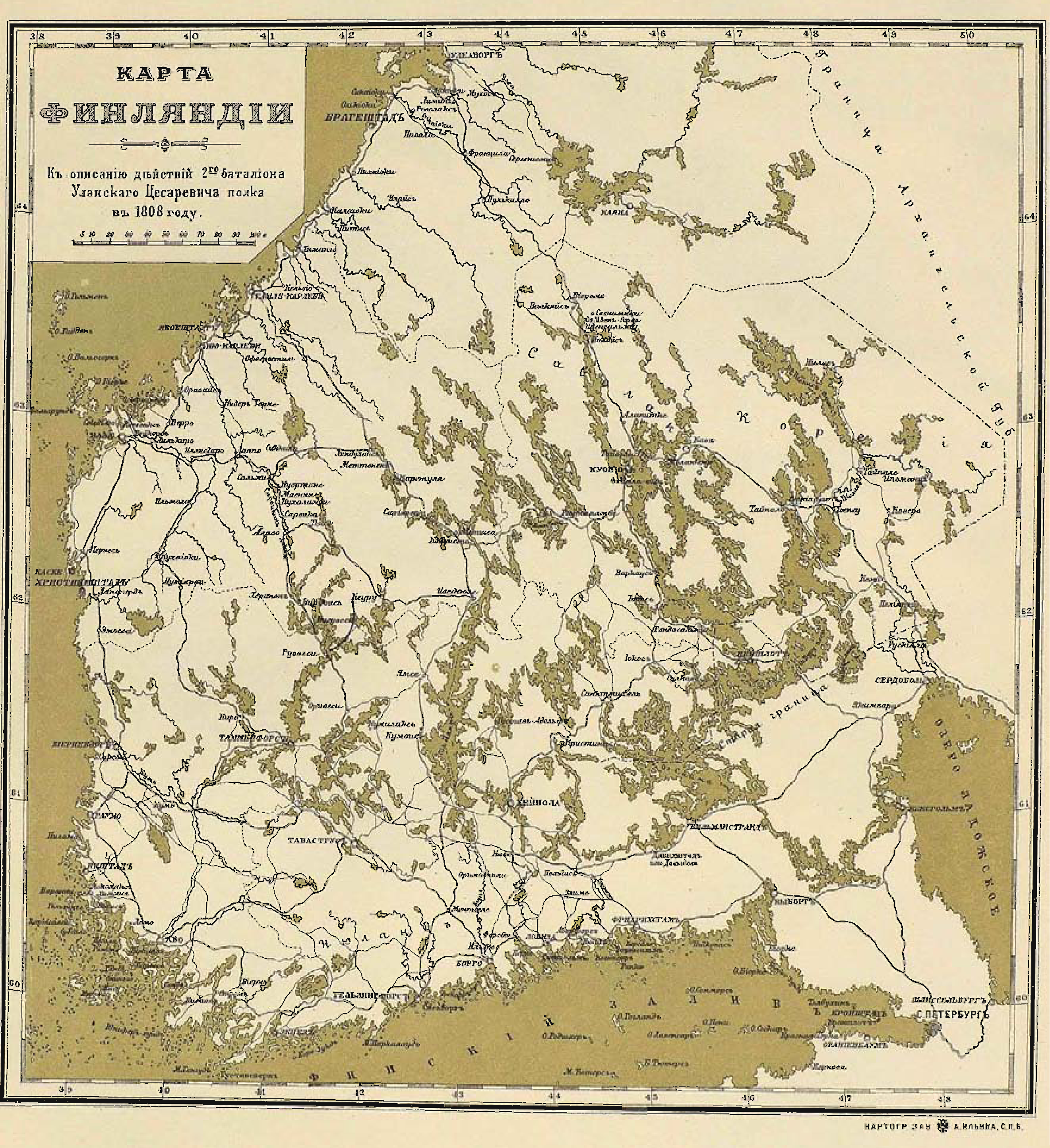 Карта Финляндии. К описанию действий 2-го батальона Уланского Цесаревича полка в 1808 году
