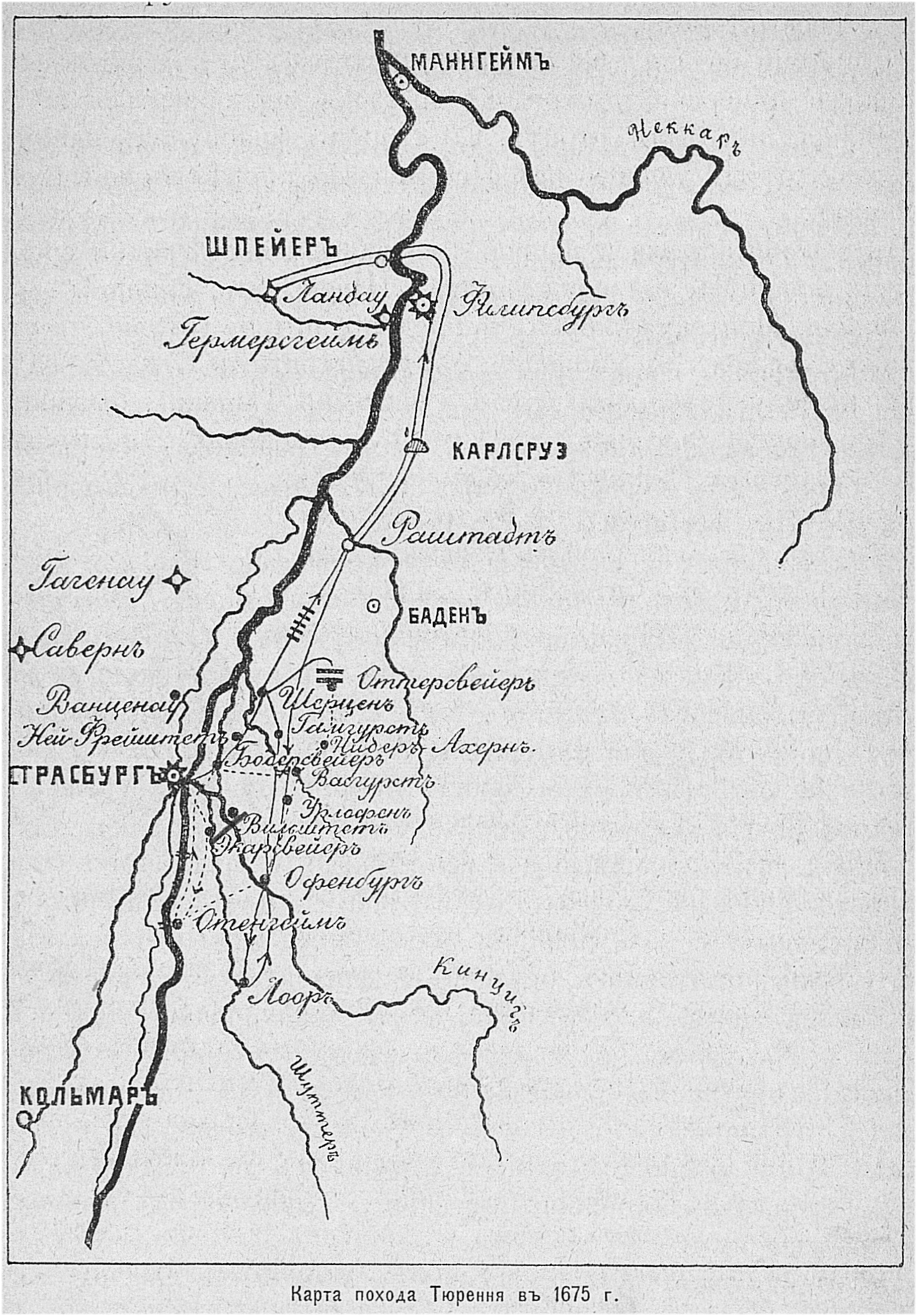 Карта похода Тюрення в 1675 году.