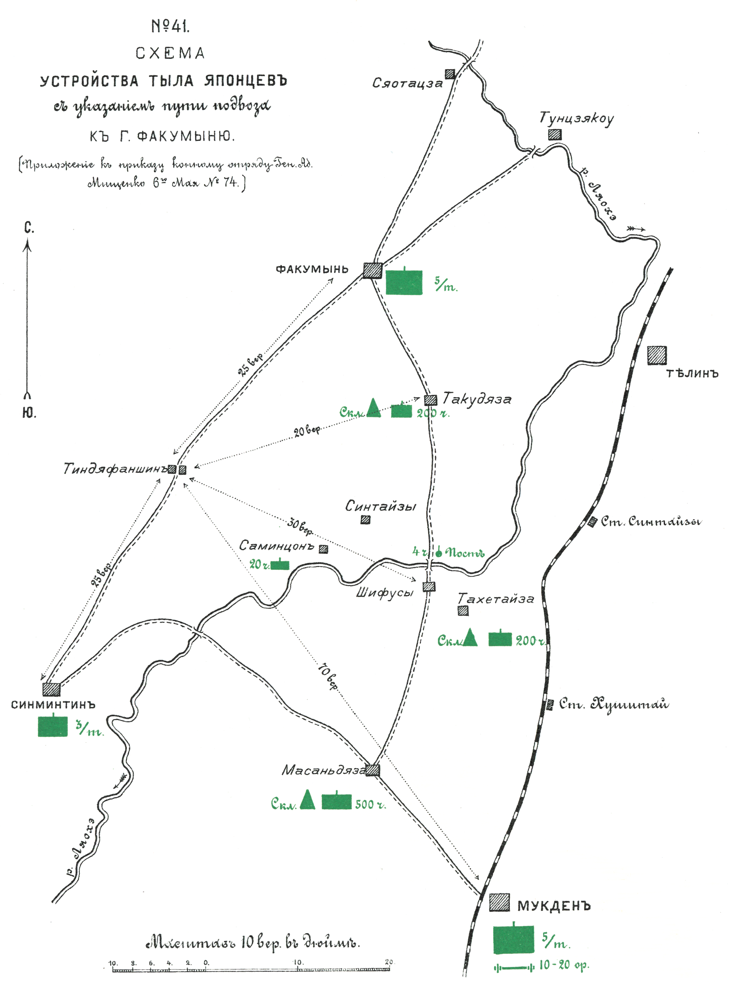 Устройство тыла японцев, с указанием пути подвоза к городу Факумыню