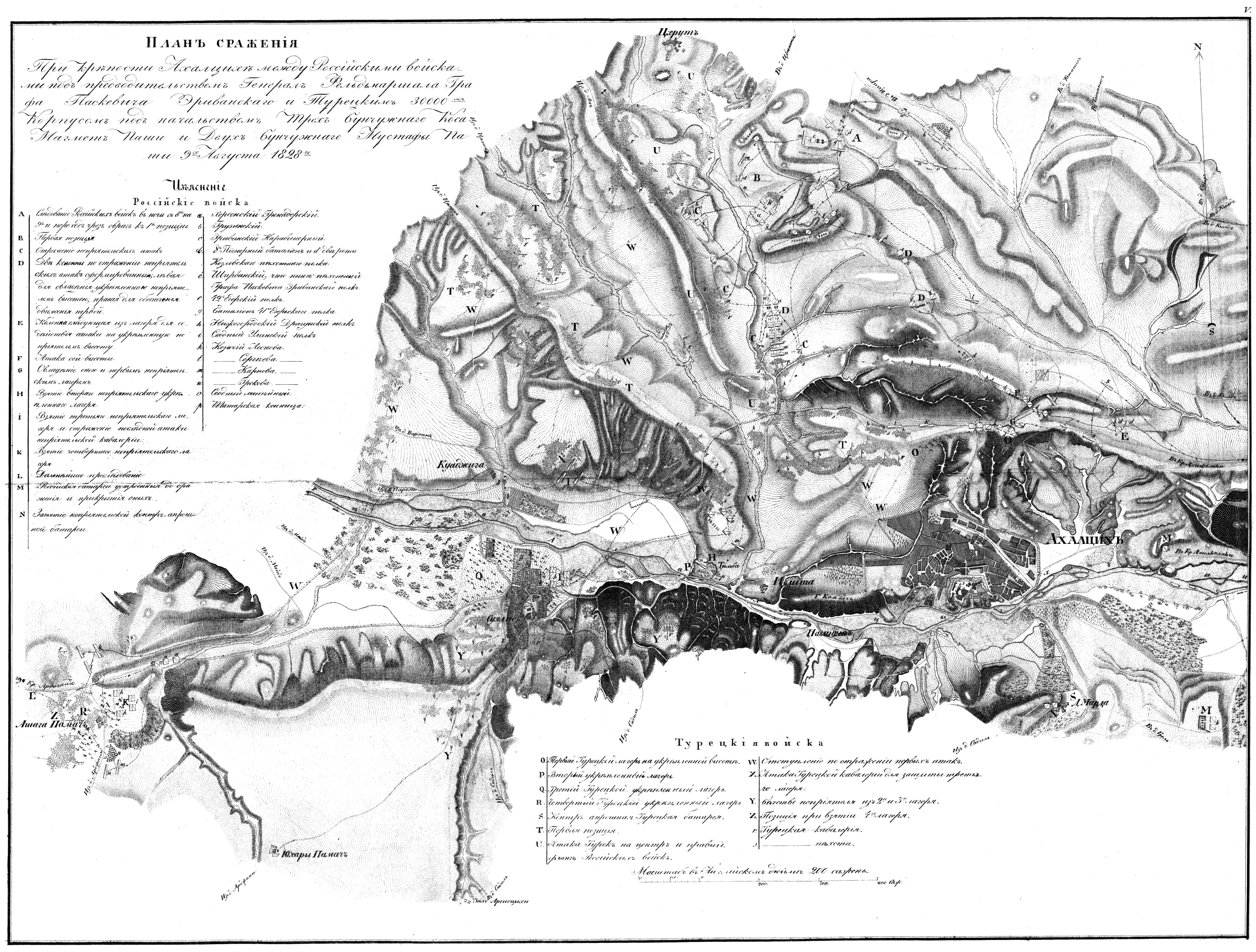 Сражение при крепости Ахалцих между Российскими войсками под предводительством Генерал Фельдмаршала Графа Паскевича Эриванского, и Турецким 30 000 Корпусом под начальством Трех бунчужного Коса-Магмет Паши и Двух бунчужного Мустафы Паши 9 августа 1828 год