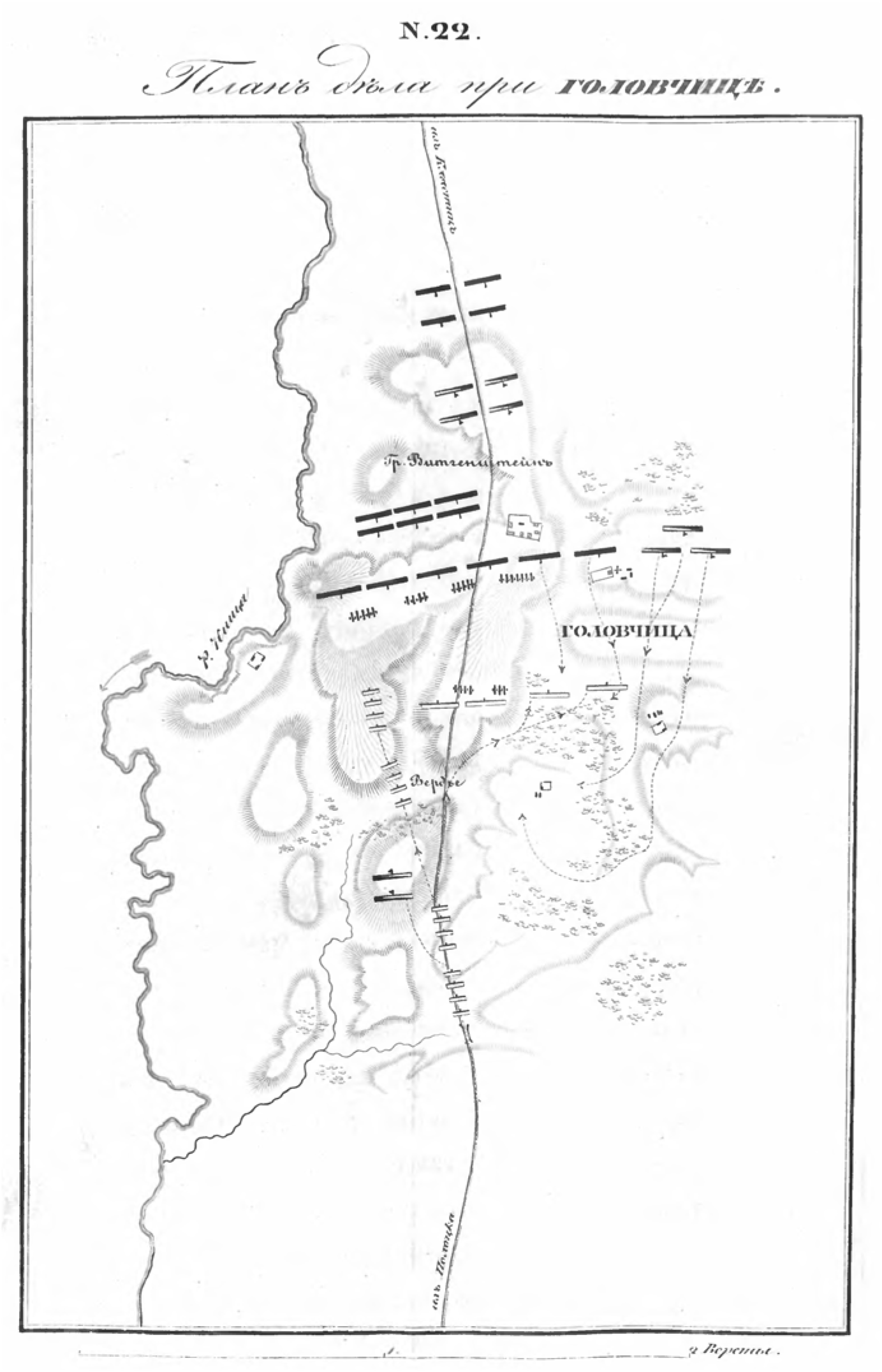 Карта-схема битвы при Фрауштадте, 13 (3) февраля 1706 года