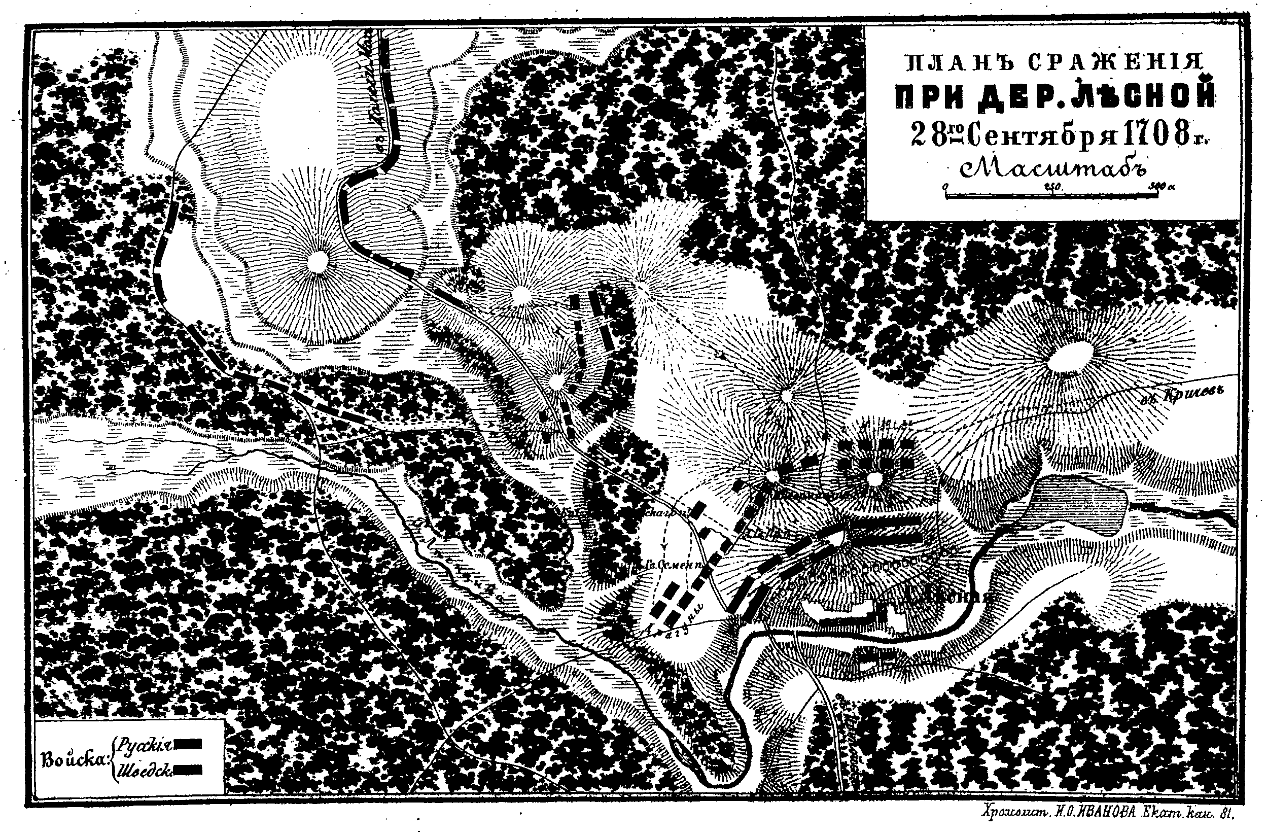Карта-схема битвы при Фрауштадте, 13 (3) февраля 1706 года