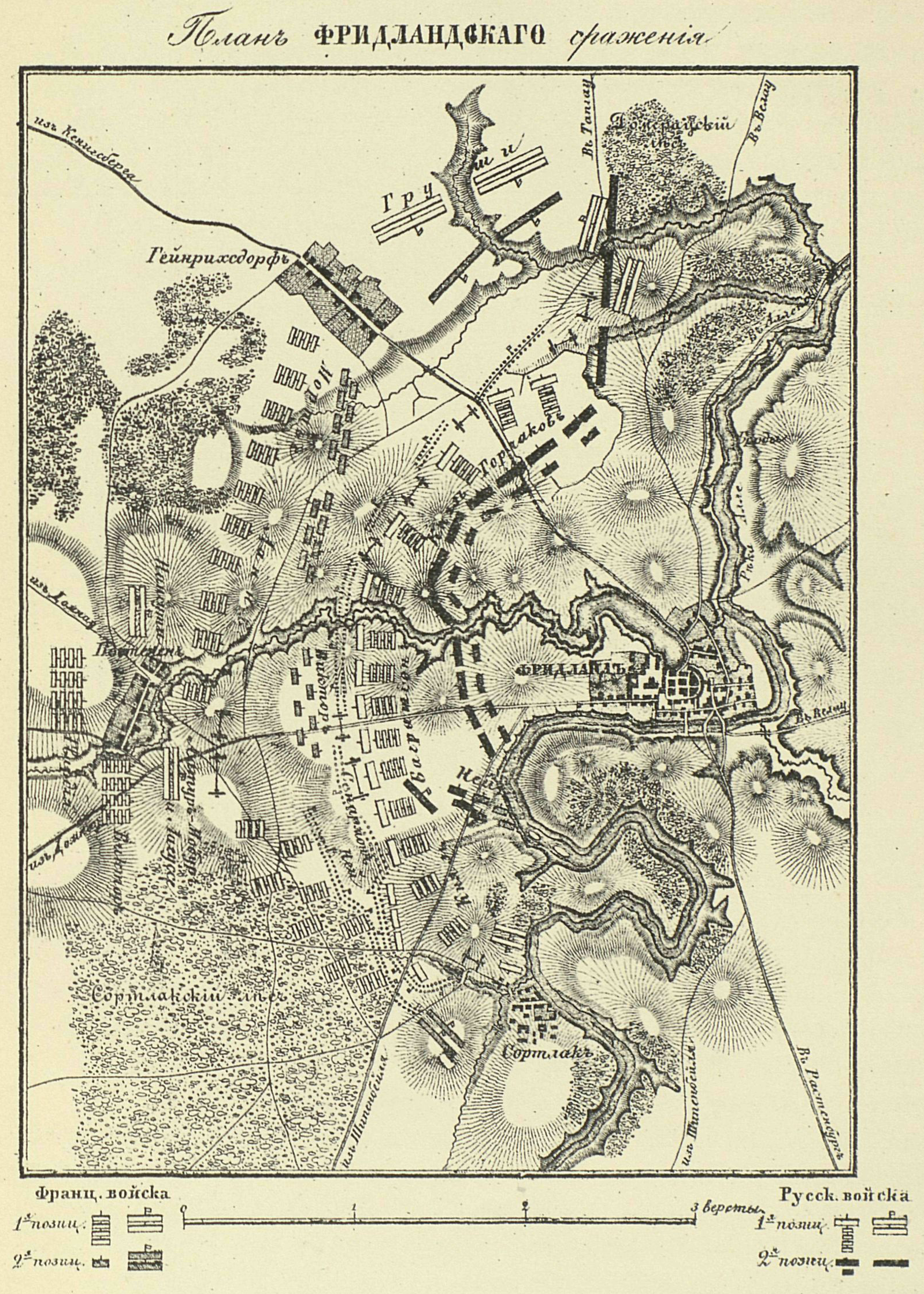 План Фридландского сражения 2 июня 1807 года