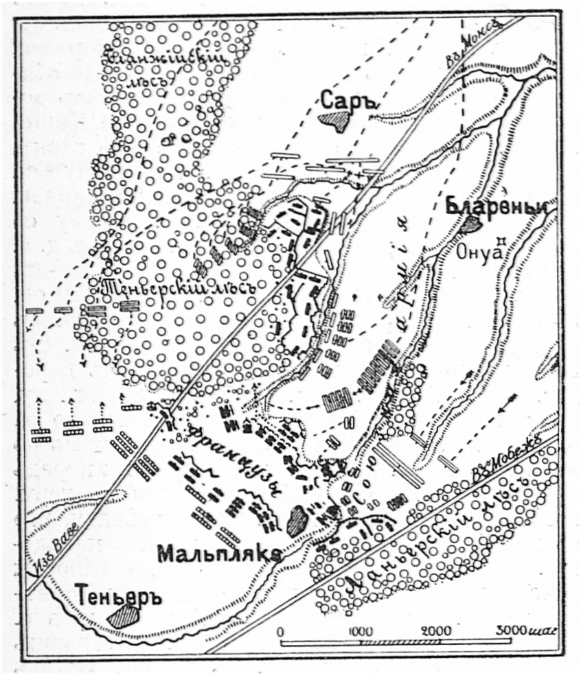 Карта-схема битвы при Фрауштадте, 13 (3) февраля 1706 года