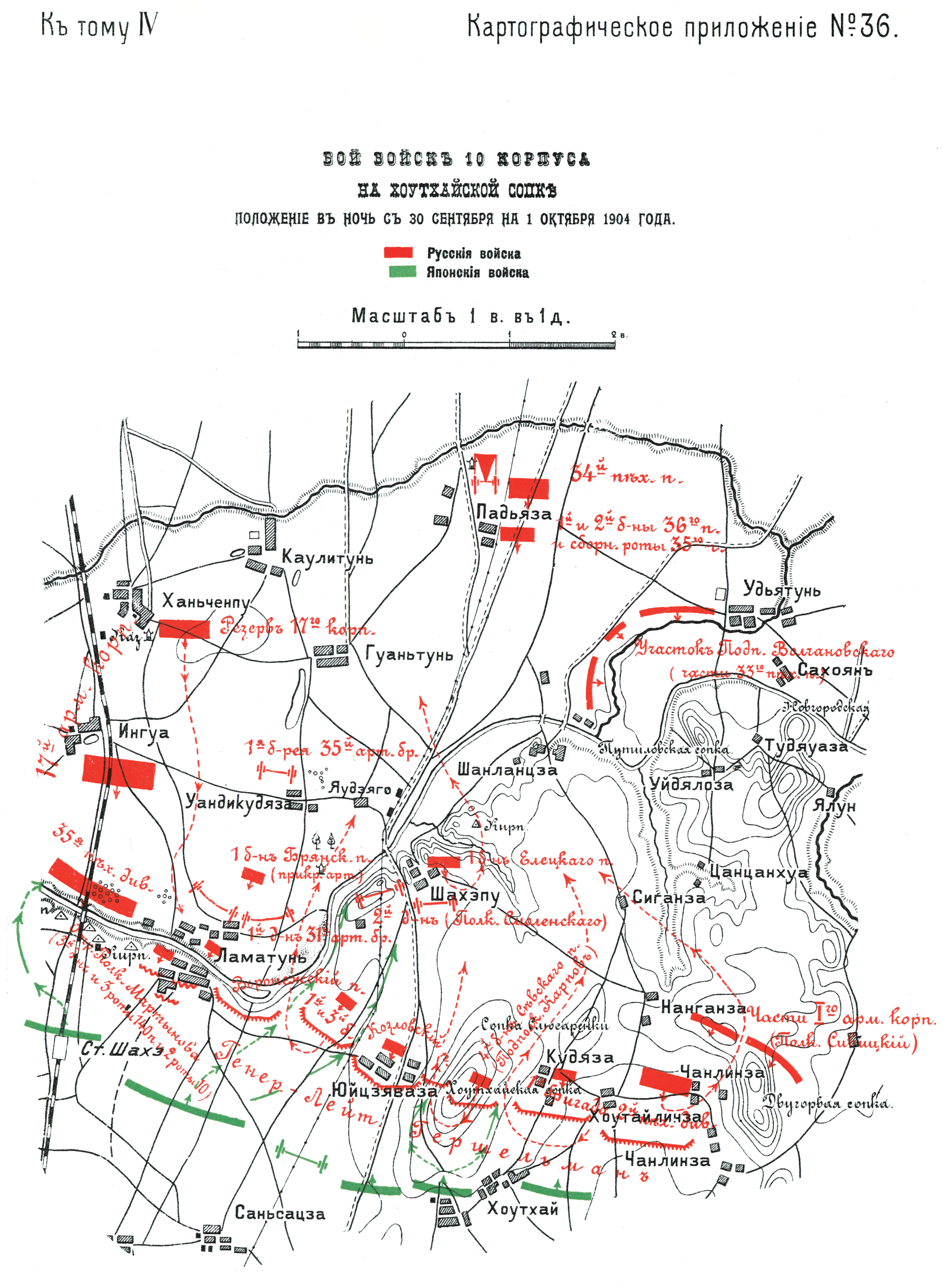 Бой войск 10 Корпуса на Хоутхайской сопке, положение в ночь с 30 сентября на 1 октября 1904 года