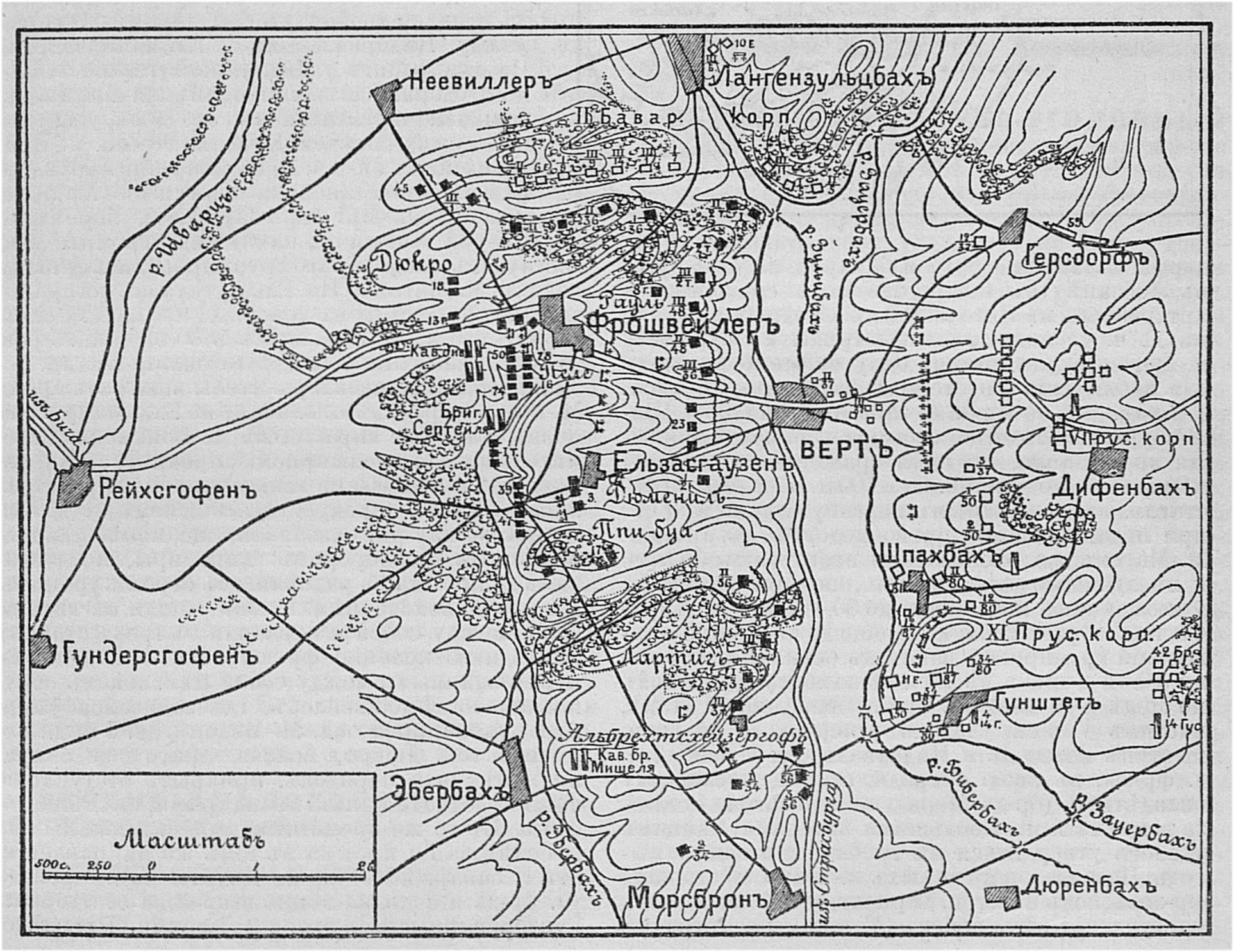 Карта-схема битвы при Фрауштадте, 13 (3) февраля 1706 года