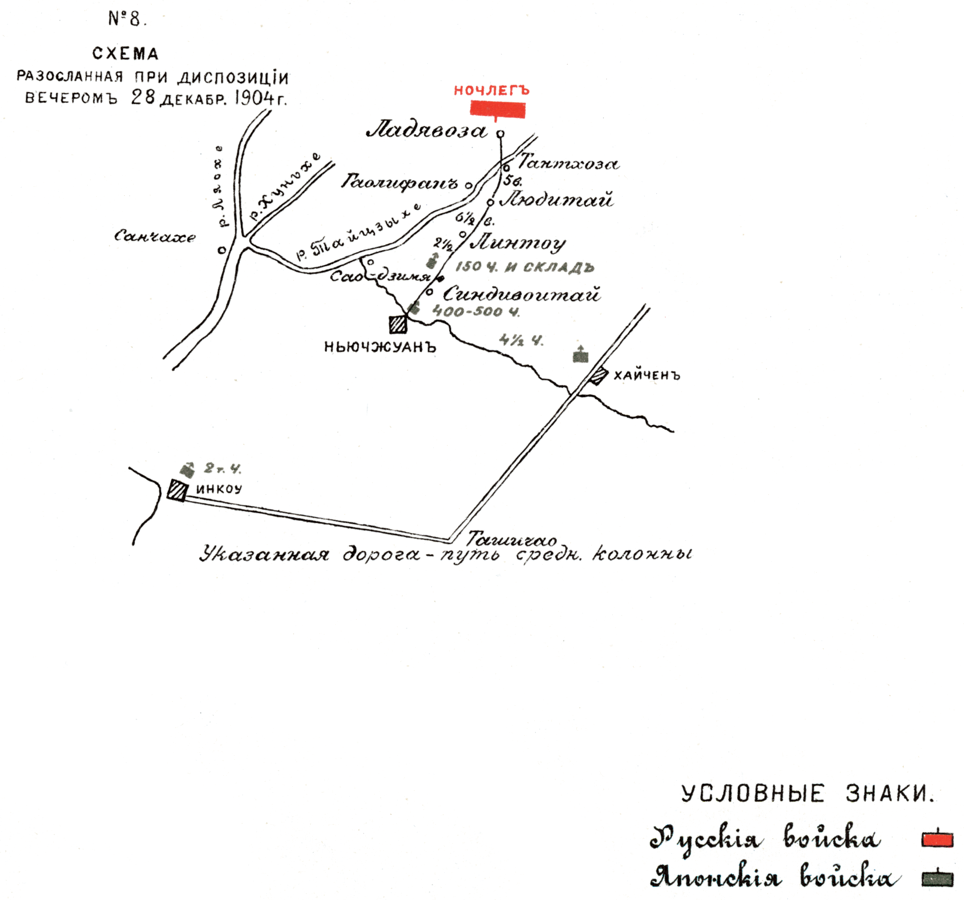 Схема, разосланная при диспозиции вечером 28 декабря 1904 года