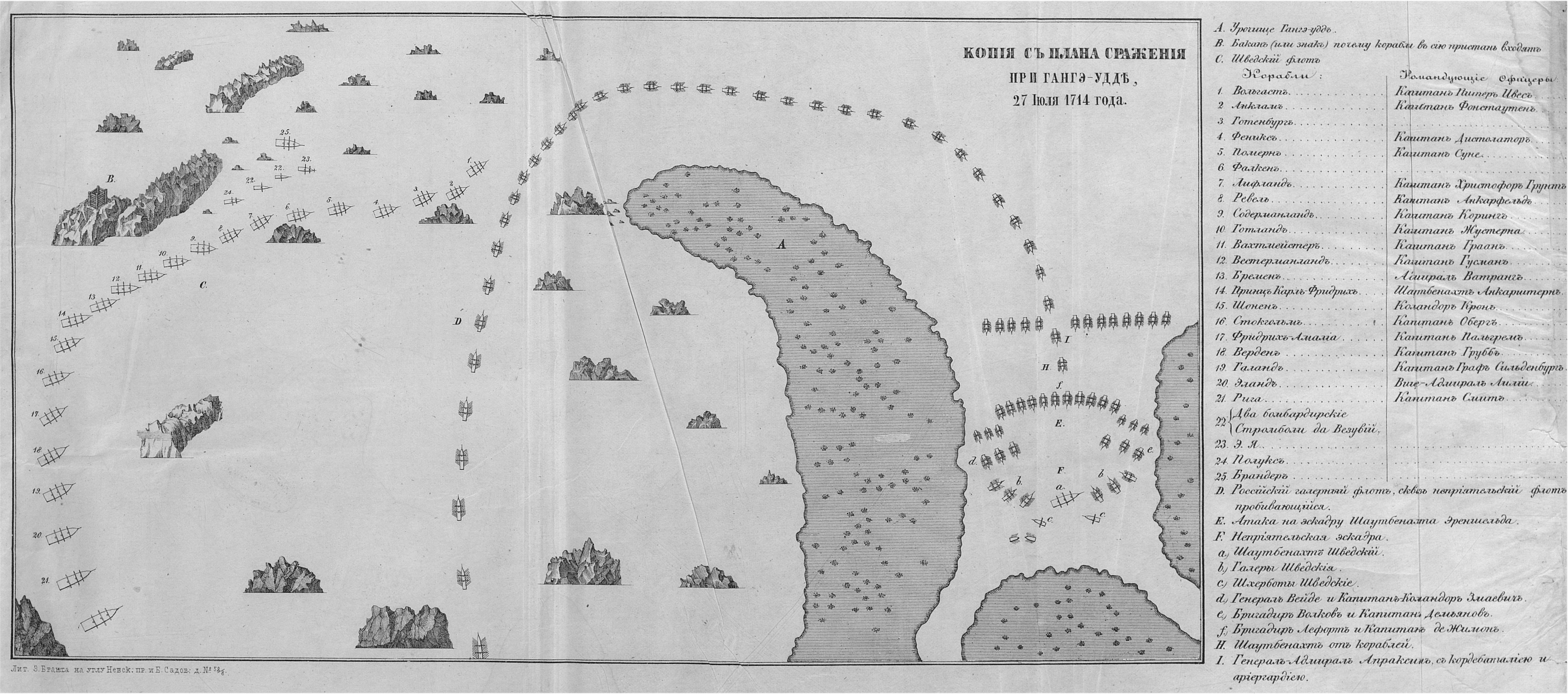 Копия с плана сражения при Гангэ-Уддэ (Гангуте) 27 июля 1714 года