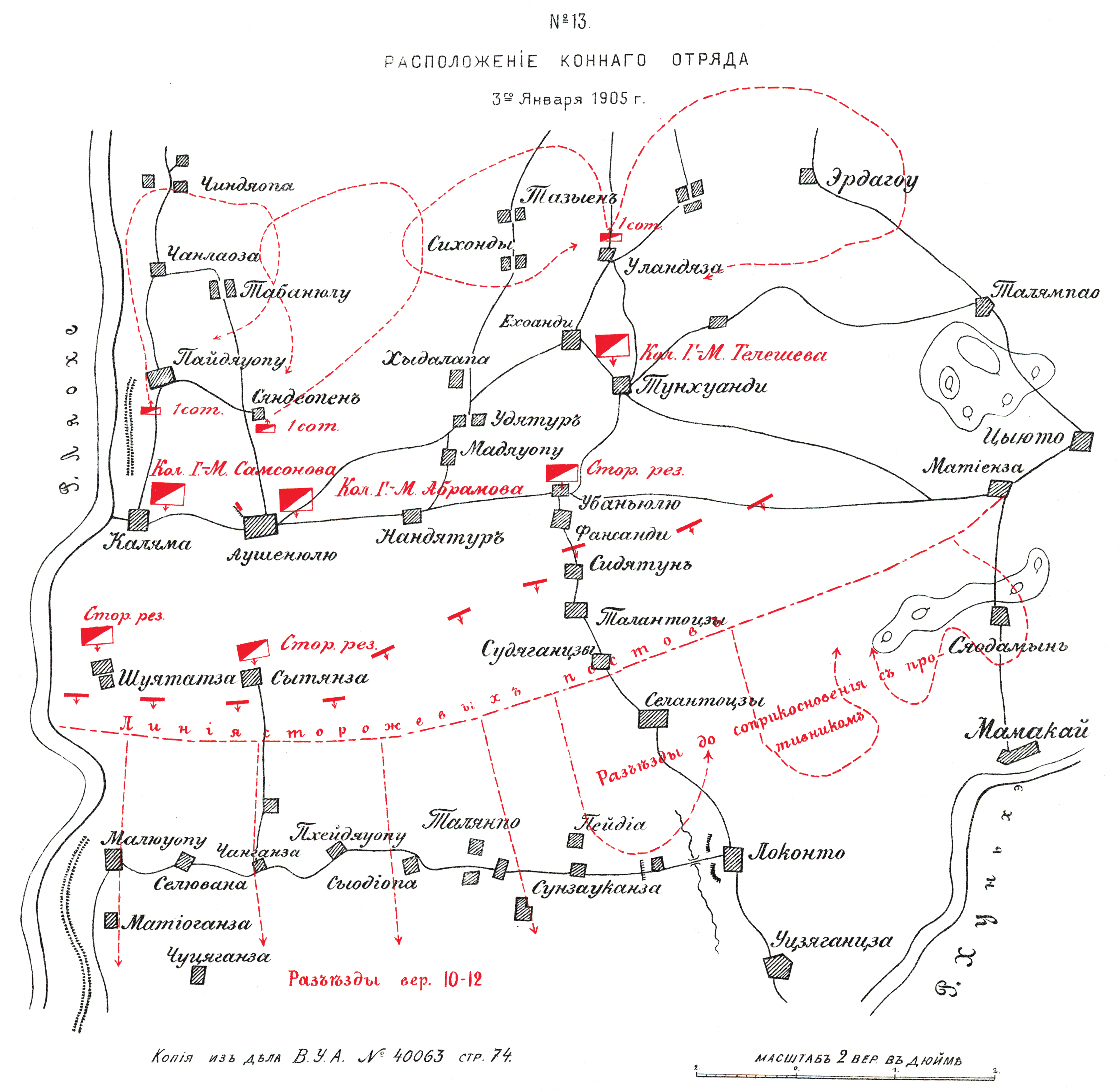 Расположение конного отряда 3 января 1905 года