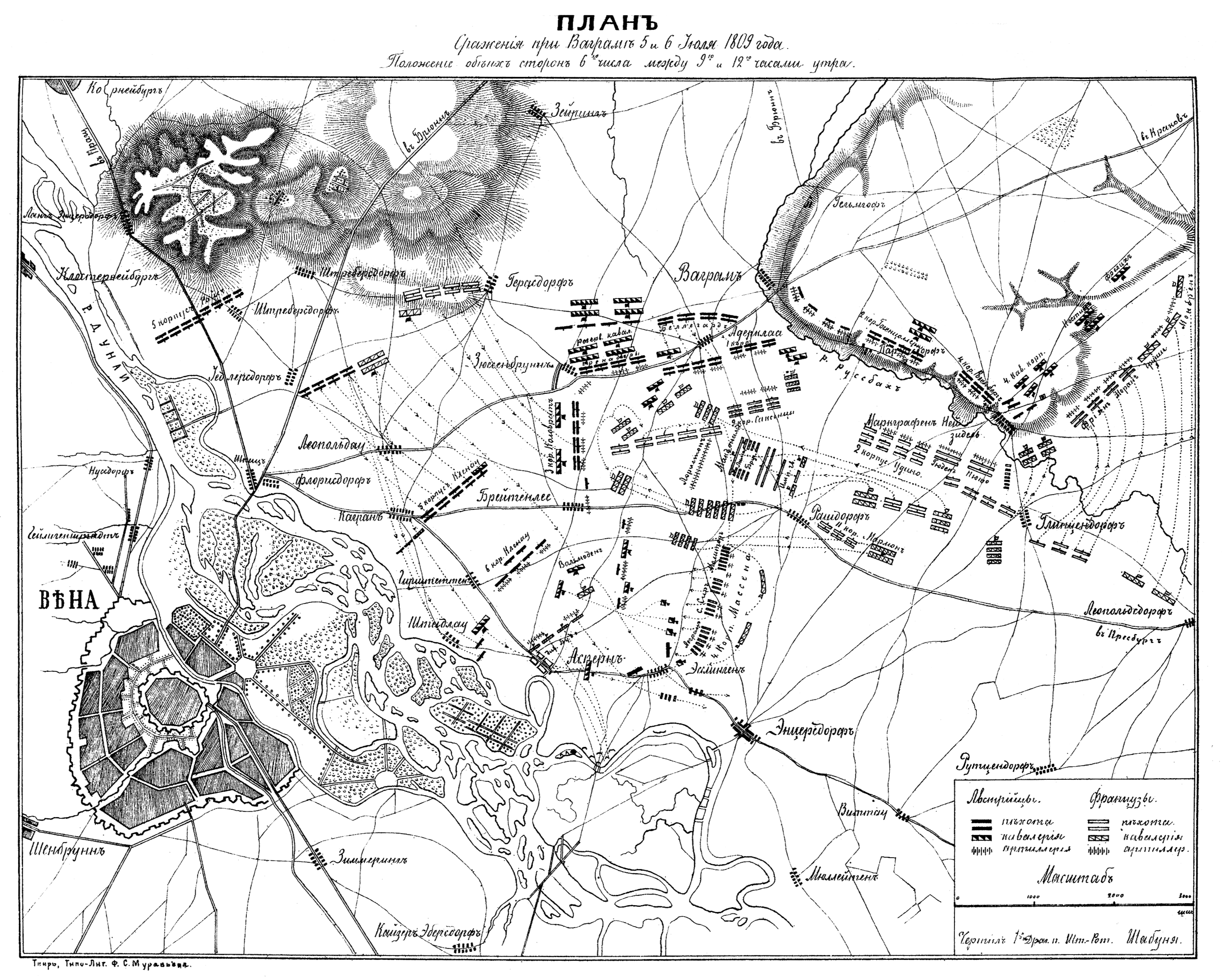 Сражение при Ваграме 5 и 6 июля 1809 года. Положение обеих сторон 6 числа между 9 и 12 часами утра