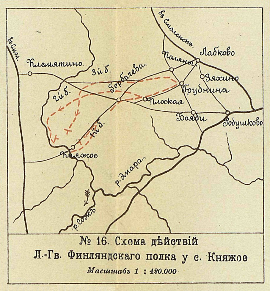 Отечественная война 1812 года. Схема действий Лейб-Гвардии Финляндского полка у с.Княжое