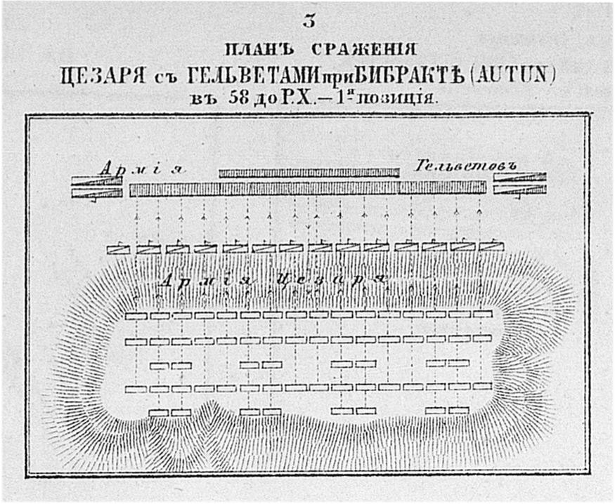 Сражение Цезаря с гельветами при Бибракте в 58 году до Р.Х. - первая позиция