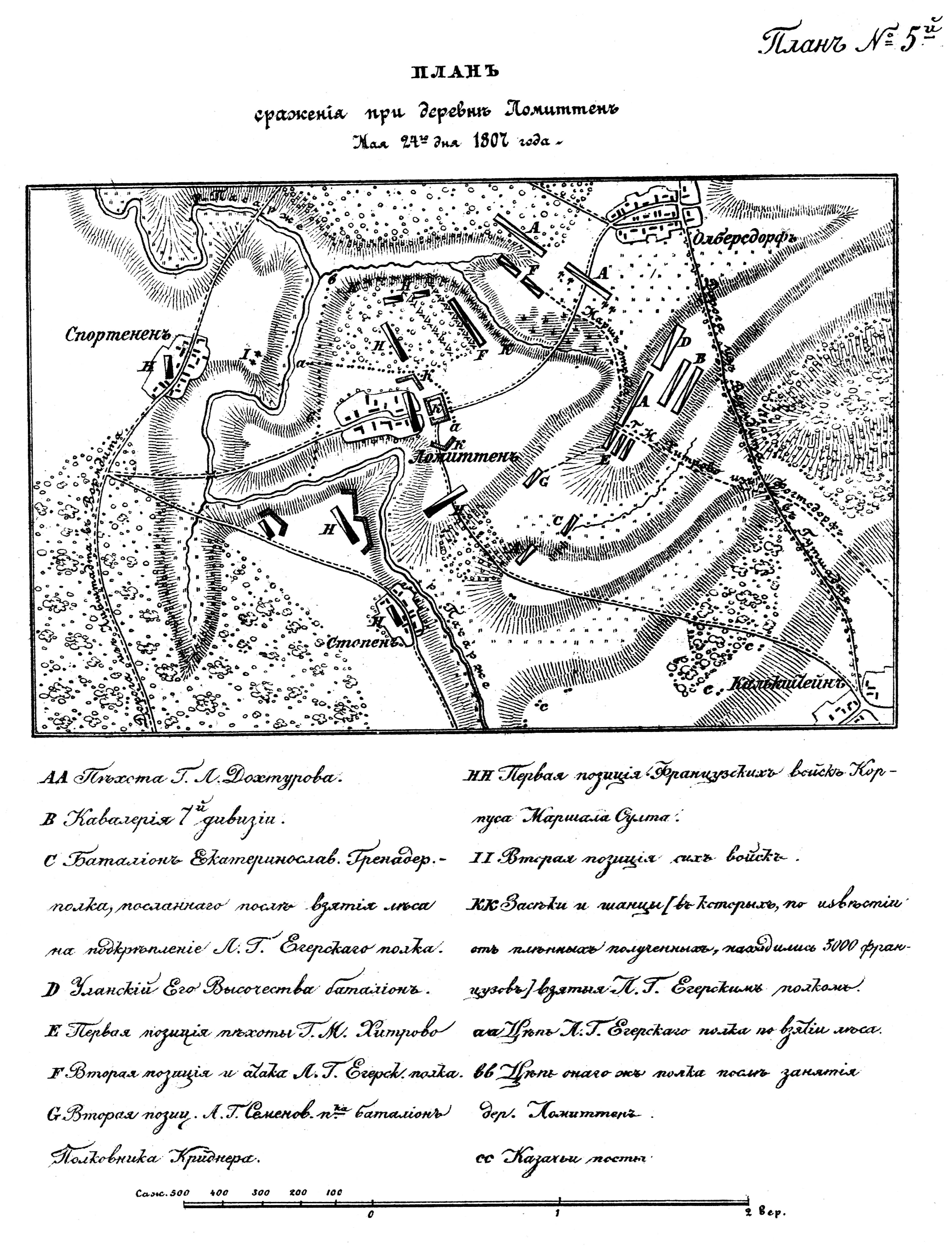 План сражения при деревне Ломиттен 27 мая 1807 года