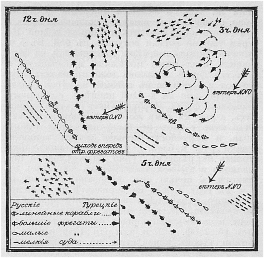Различные этапы сражения 8 июля 1790 года между русскими и турецкими эскадрами в Керчь-Еникальском проливе