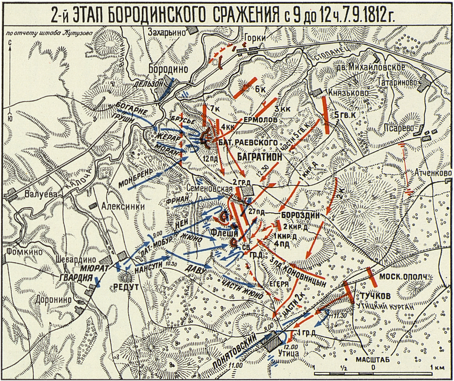 Второй этап Бородинского сражения с 9 до 12 ч. 7.9.1812г.