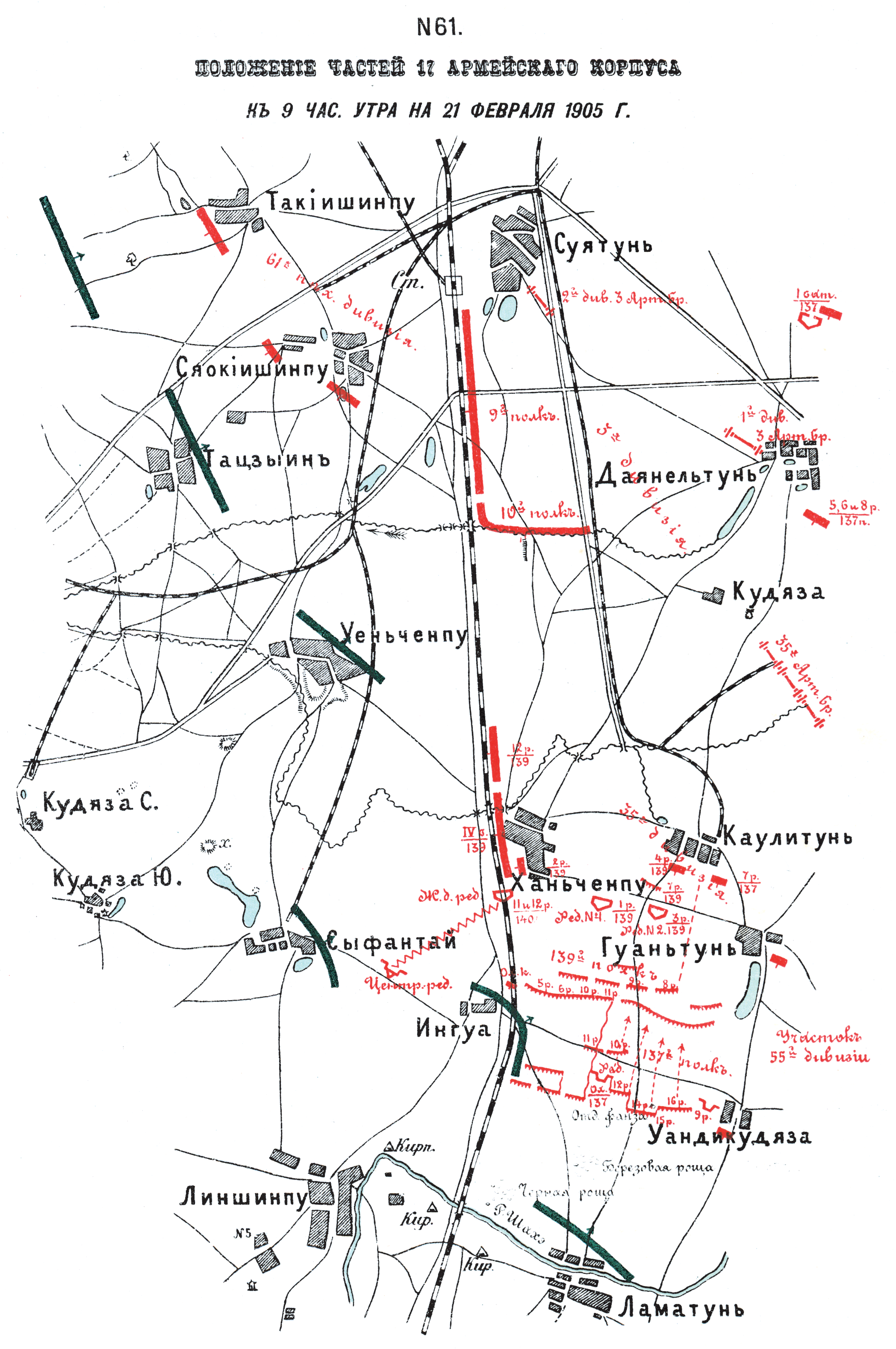 Положение частей 17 армейского корпуса к 9 часам утра на 21 февраля 1905 года