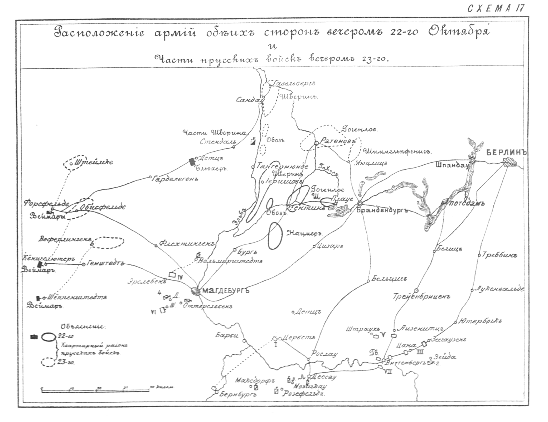 Расположение армий обеих сторон вечером 22 и части прусских войск вечером 23 октября