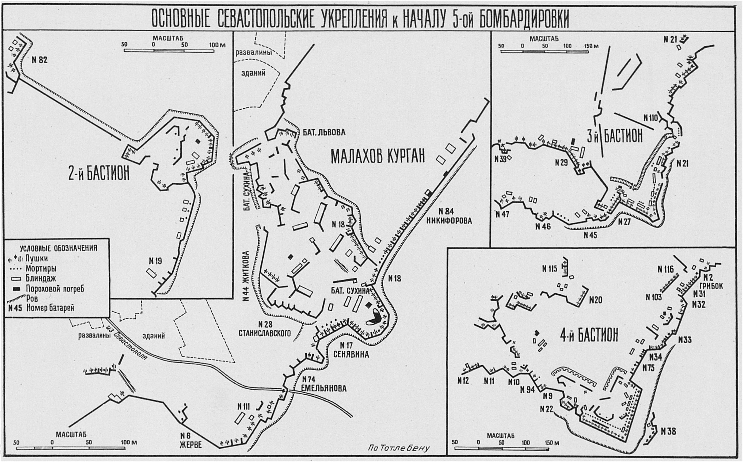 Основные севастопольские укрепления к началу 5-ой бомбардировки