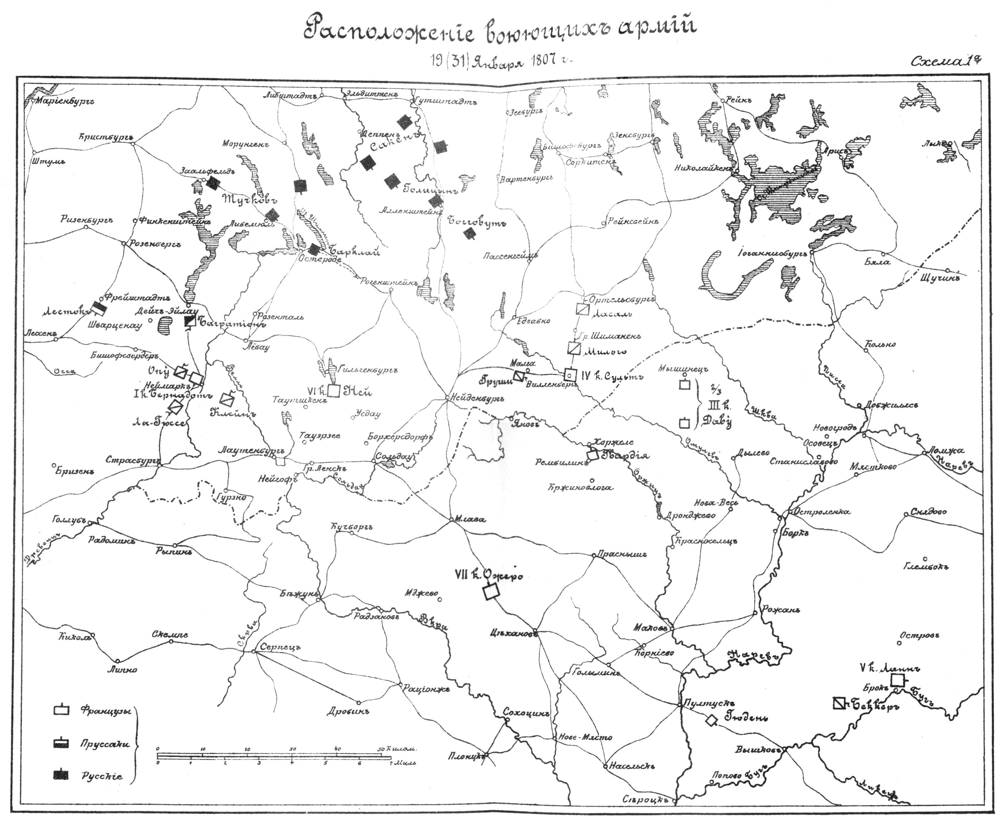 Расположение воюющих армий 19 (31) января 1807 года