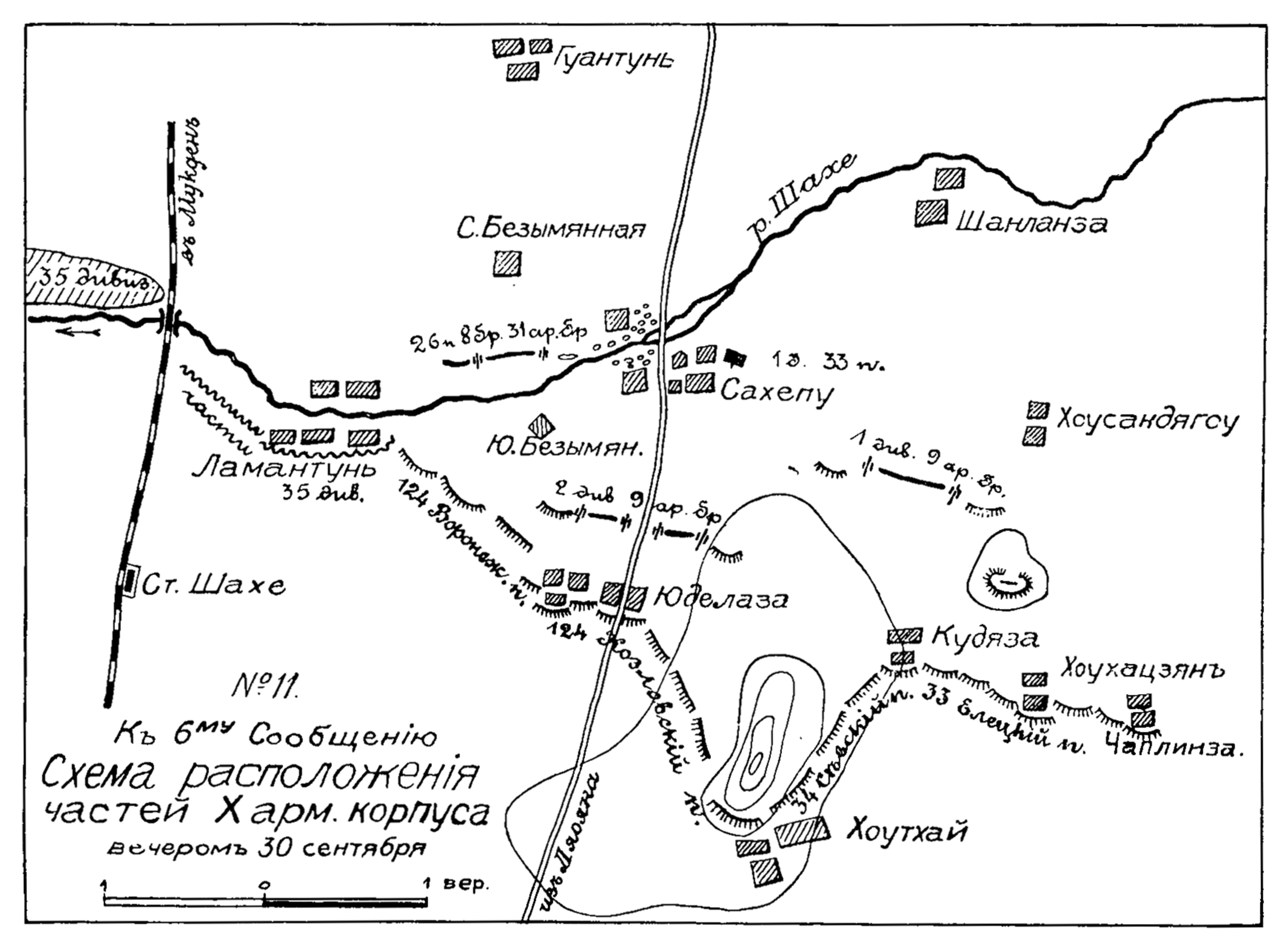 Схема расположения частей X армейского корпуса