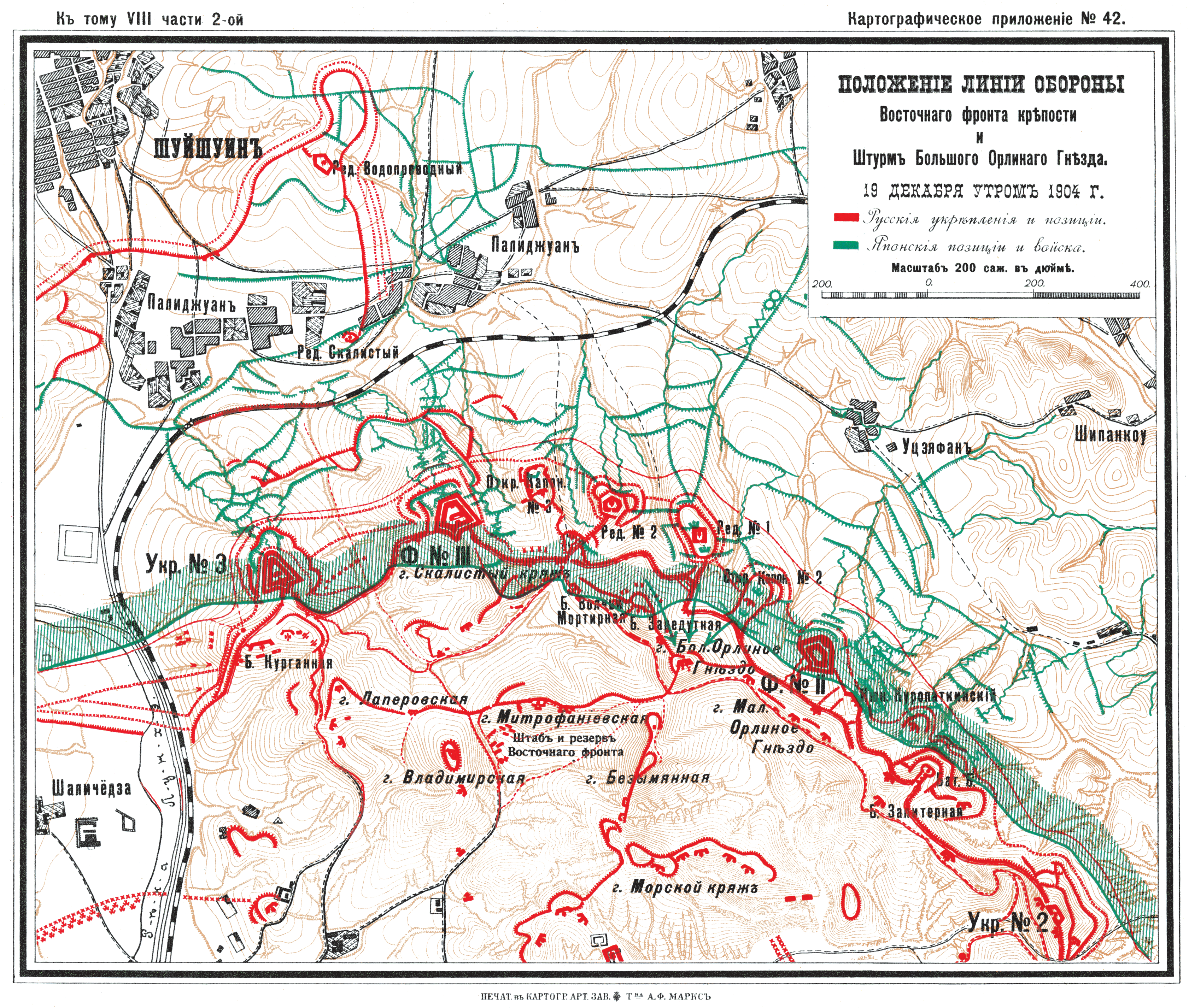Положение линии обороны Восточного фронта крепости и штурм Большого Орлиного Гнезда 19 декабря утром 1904 года