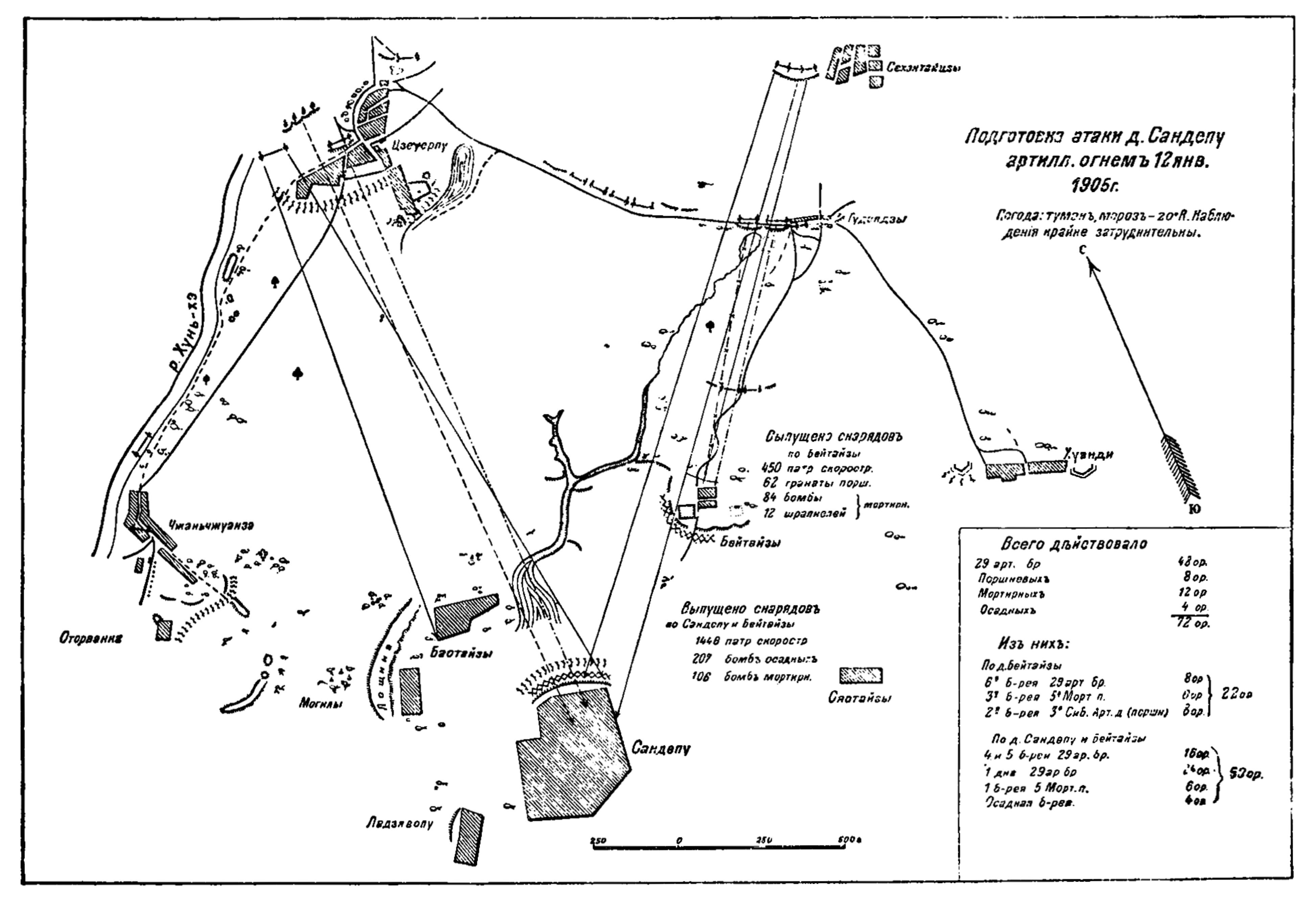 Подготовка атаки деревни Сандепу артиллерийским огнем 12 января 1905 года
