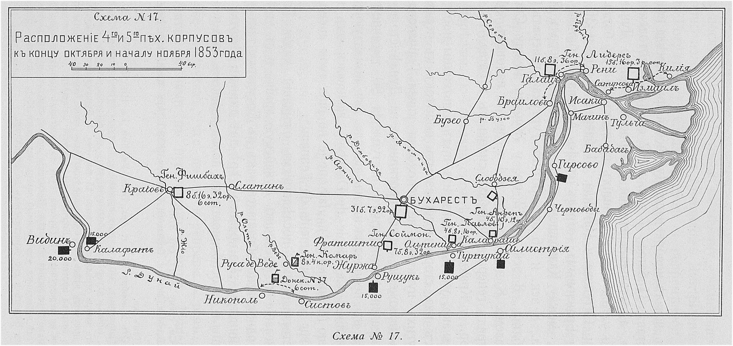 Расположение 4-го и 5-го пехотных корпусов к концу октября и началу ноября 1853 года