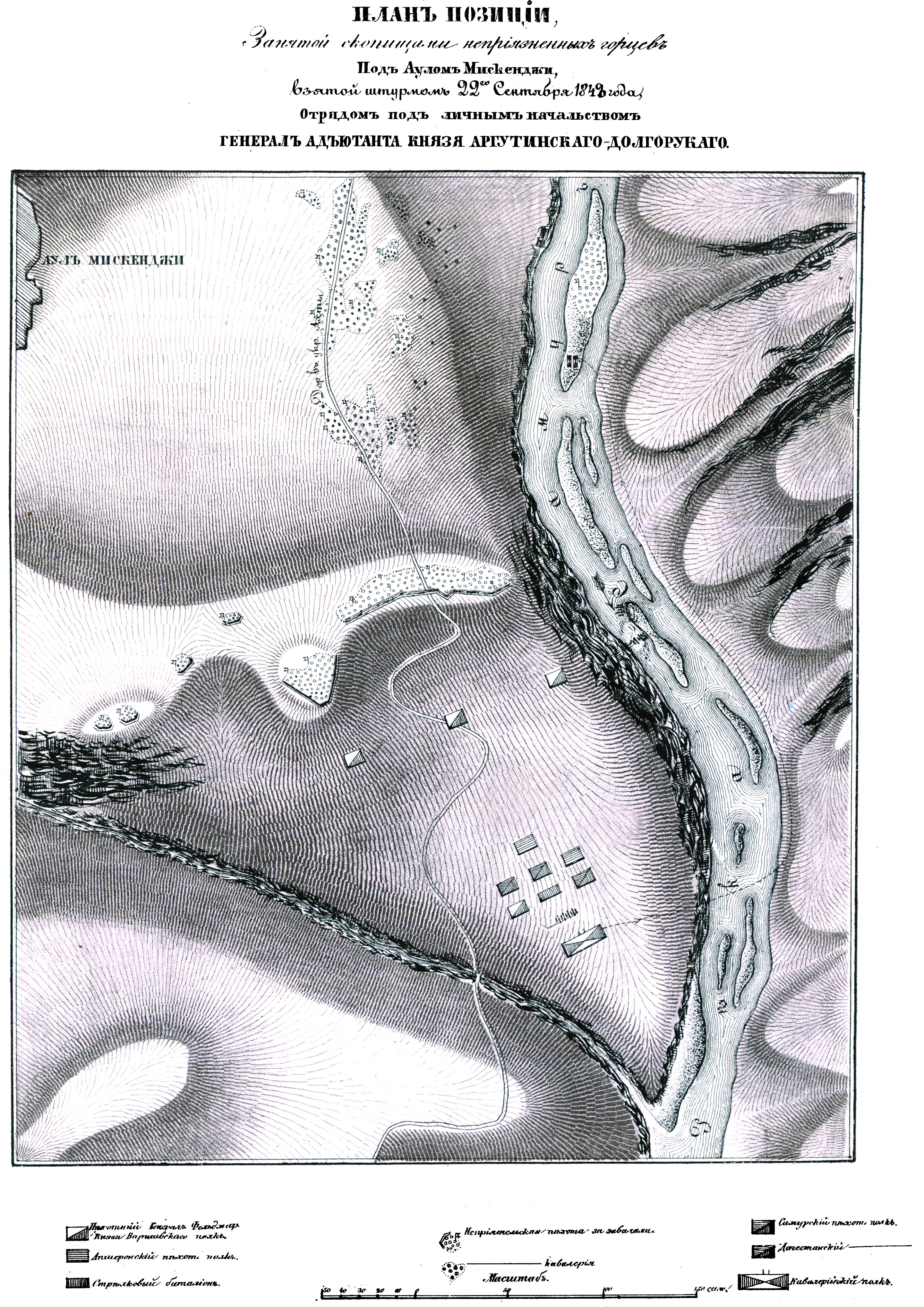 Позиция, занятая скопищами неприязненных горцев под Аулом Мискенджи, взятой штурмом 22 сентября 1848 года отрядом под личным начальством генерал-адъютанта князя Аргутинского-Долгорукого