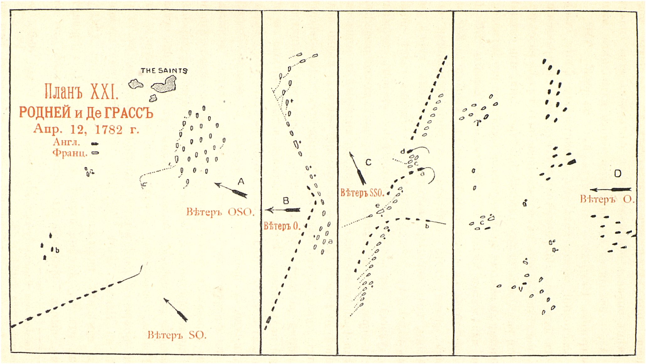 Сражение между Роднеем и де Грассом 12 апреля 1782 года
