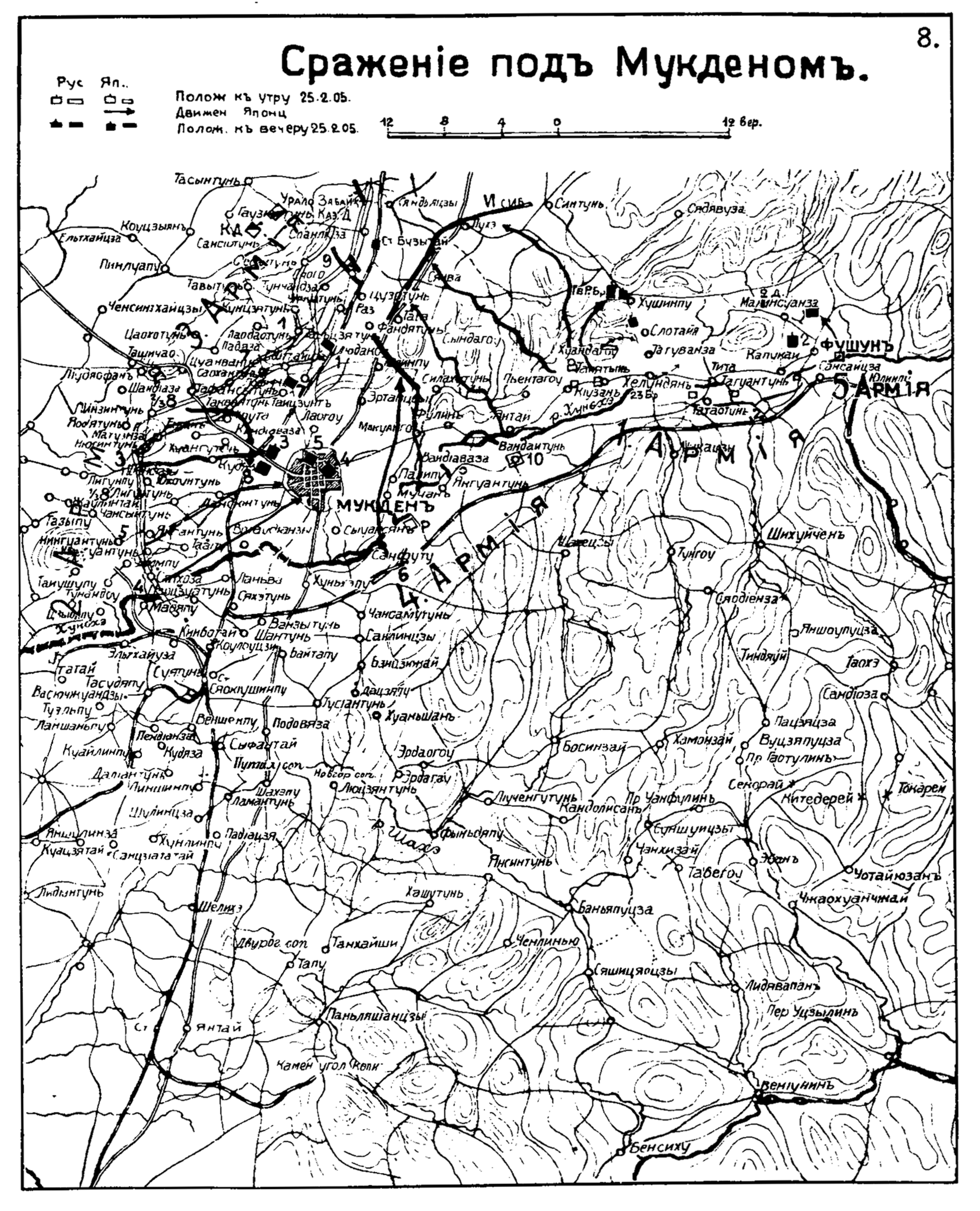 Сражение под Мукденом. Положение 25 февраля 1905 года. Движение японцев