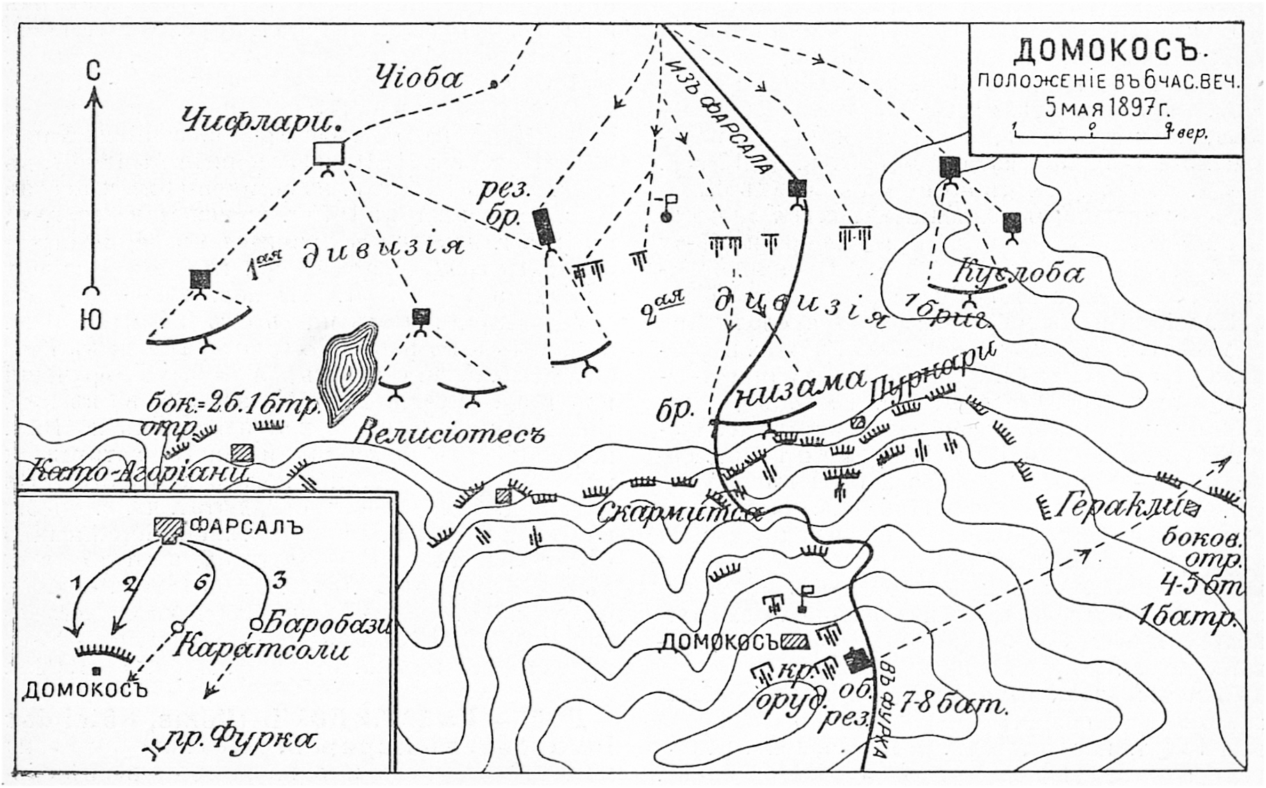 Сражение 5 мая 1897 года у Домокоса. Положение в 6 часов вечера