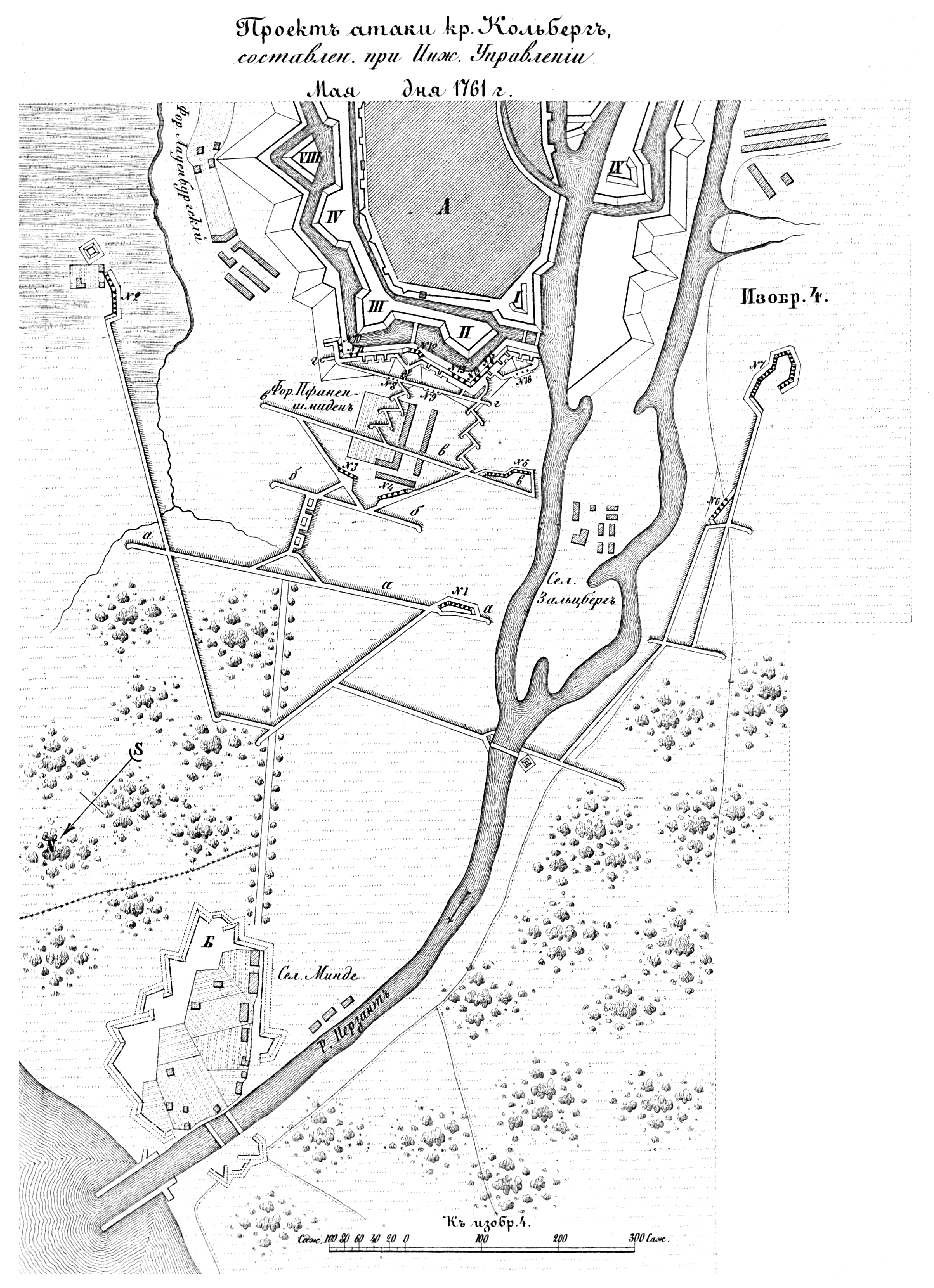 Осады крепостей. Изобр.4. Проект атаки крепости Кольберг, составленный при Инженерном Управлении в мае 1761 года