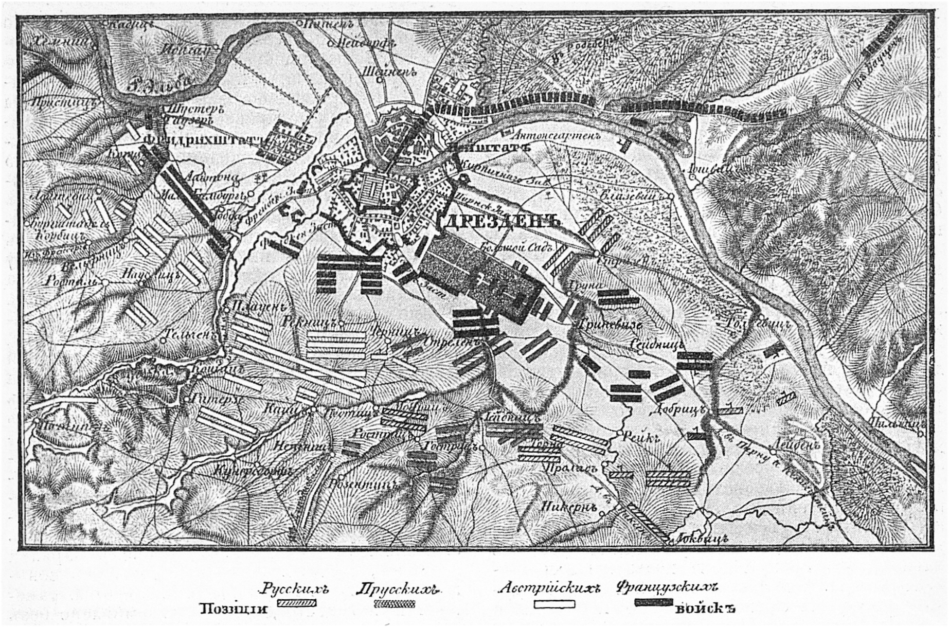Карта-схема битвы при Фрауштадте, 13 (3) февраля 1706 года