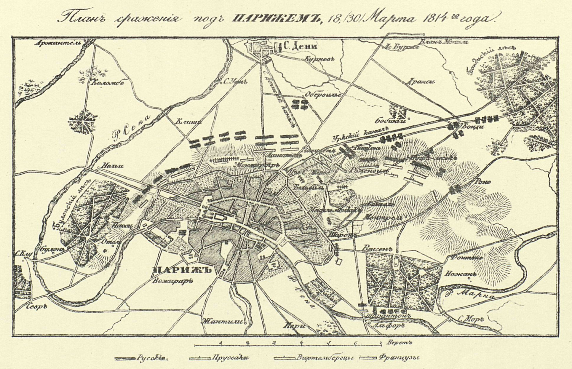 План сражения под Парижем 30 марта 1814 года