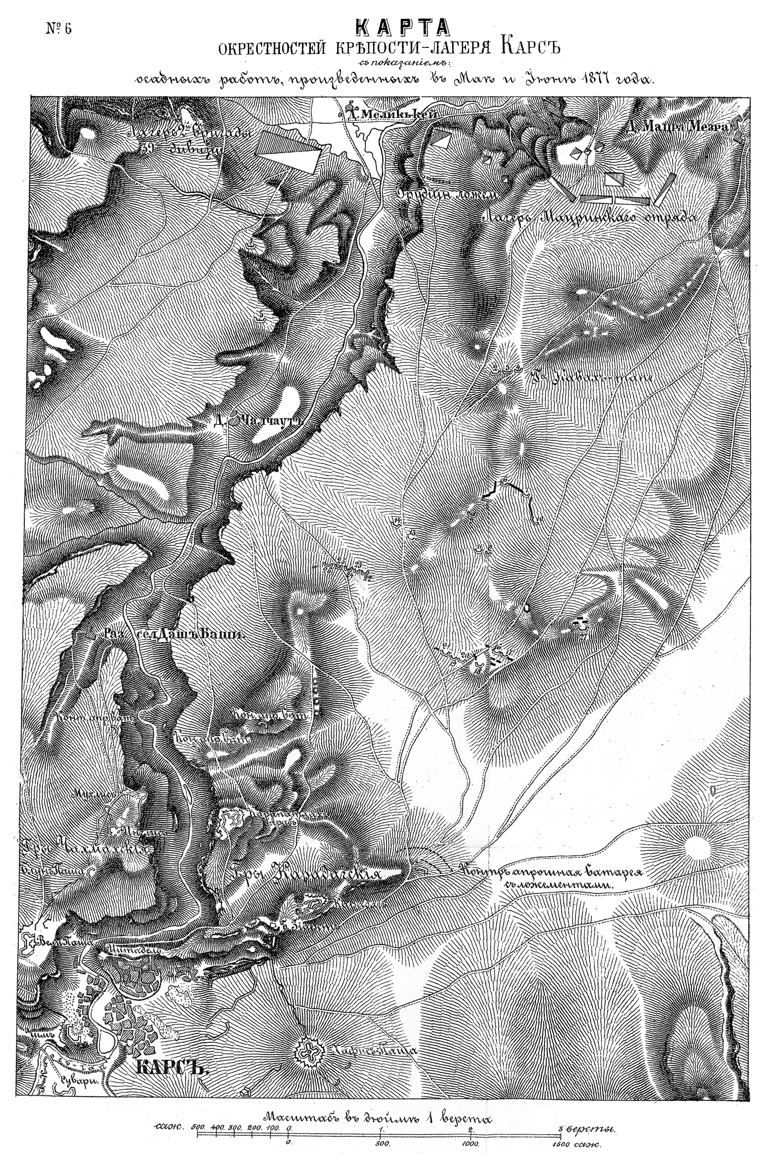 Окрестности крепости-лагеря Карс с показанием осадных работ, произведенных в мае и июне 1877 года