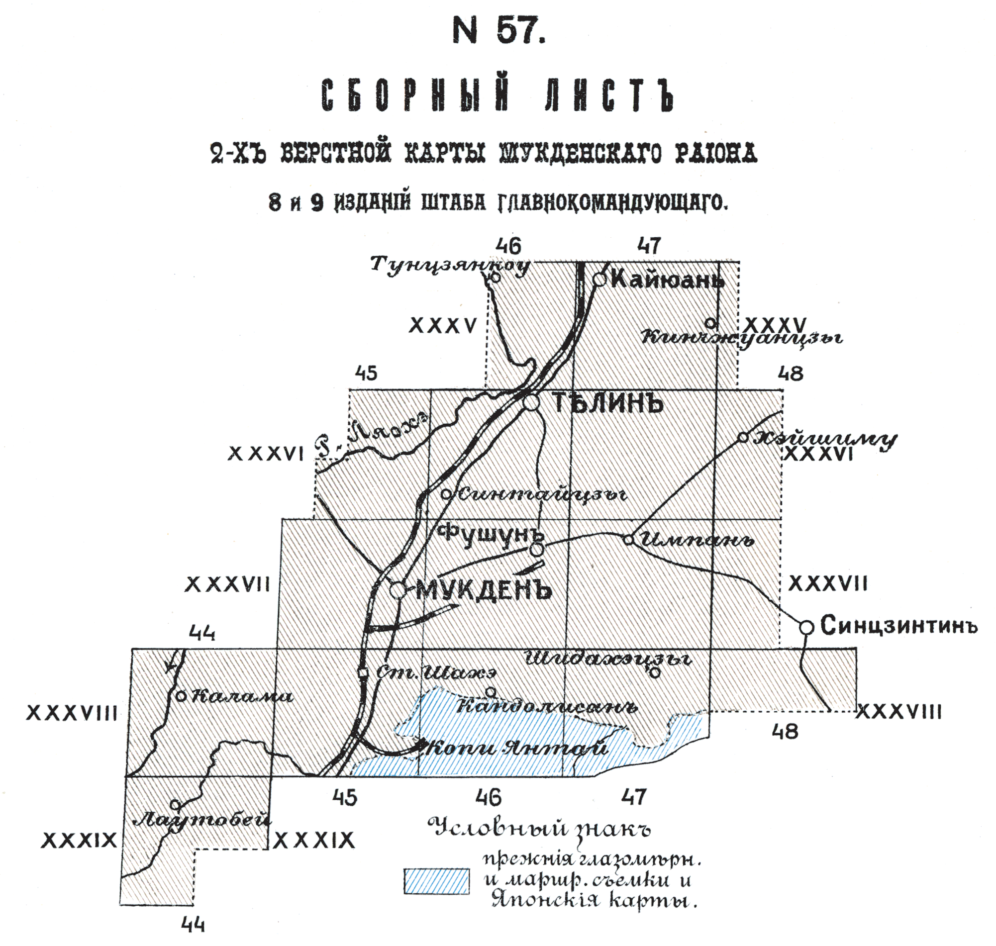 Сборный лист 2-х верстной карты Мукденского района