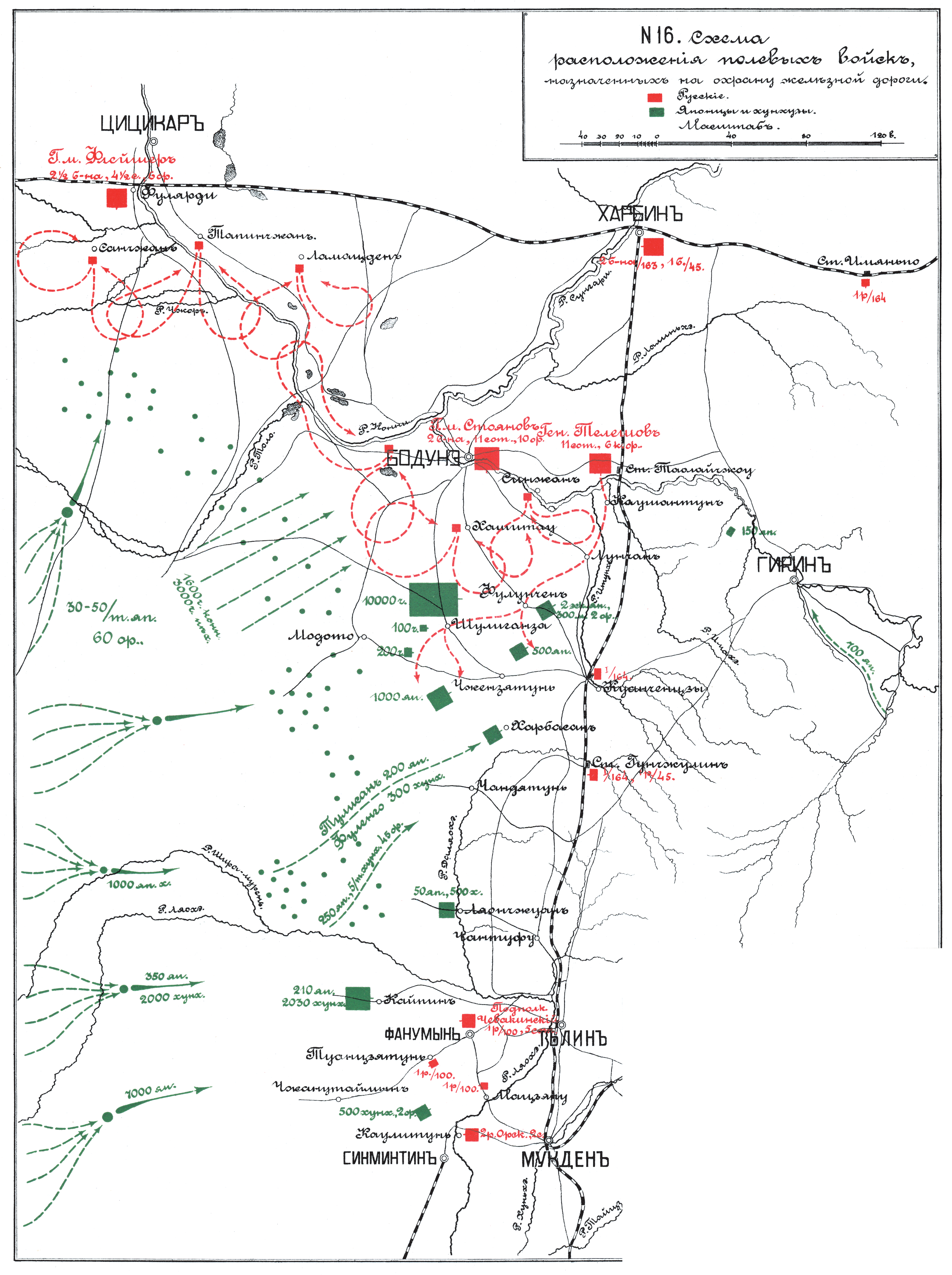Схема расположения полевых войск, назначенных на охрану железной дороги