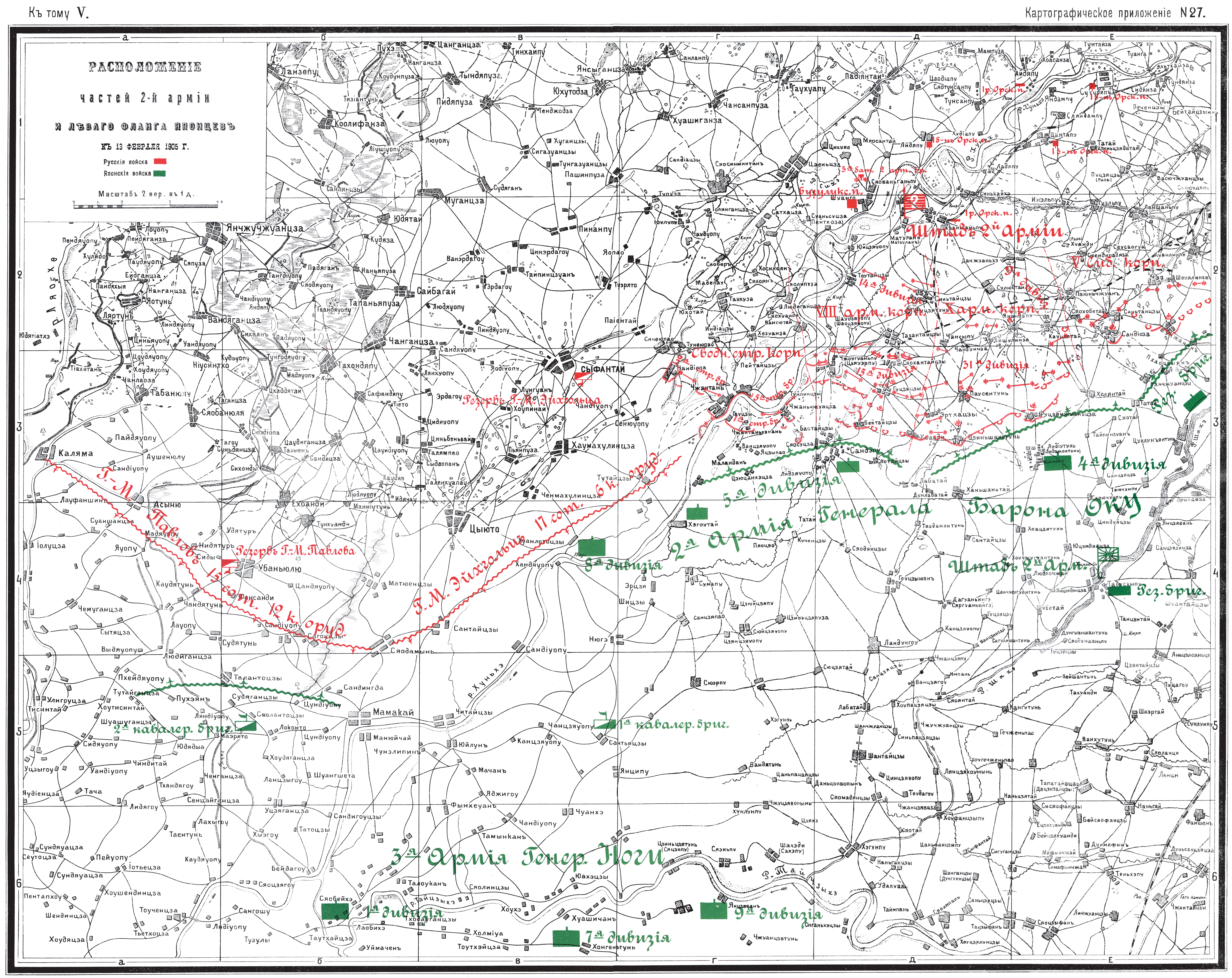 Расположение частей 2 армии и левого фланга японцев к 13 февраля 1905 года