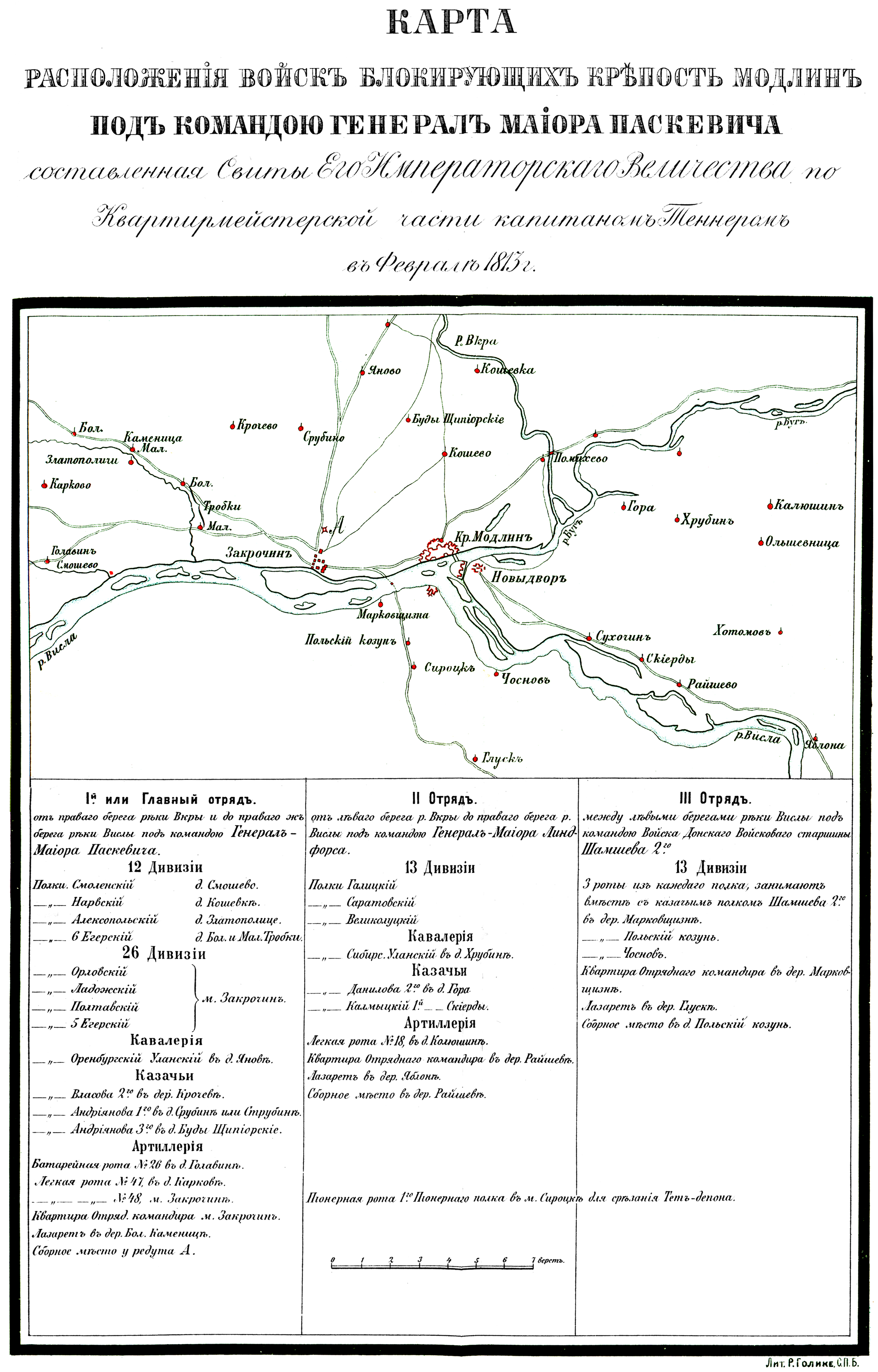 Расположение войск блокирующих крепость Модлин под камандой генерал-майора Паскевича в 1813 году