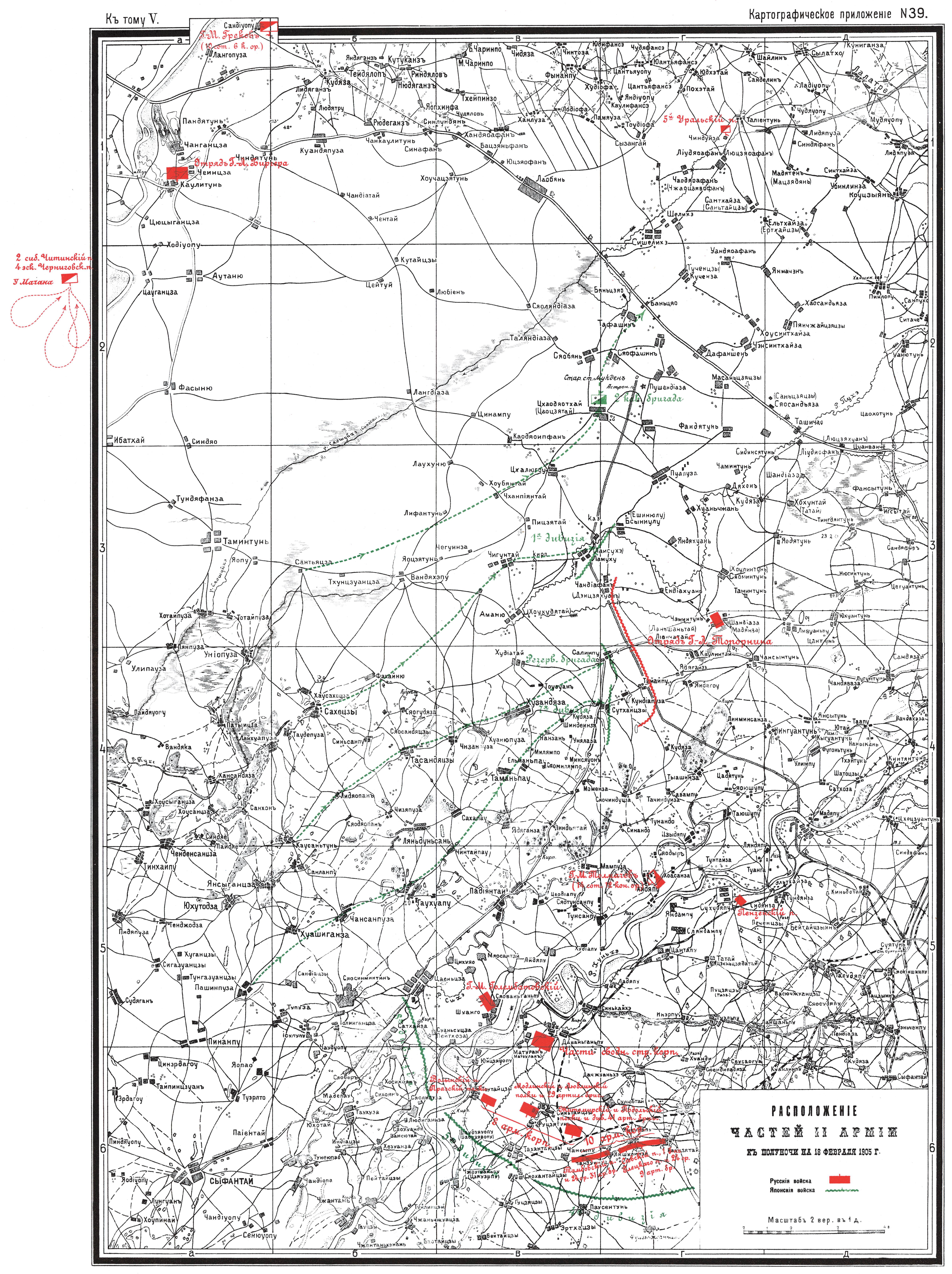 Расположение частей II Армии к полуночи на 18 февраля 1905 года