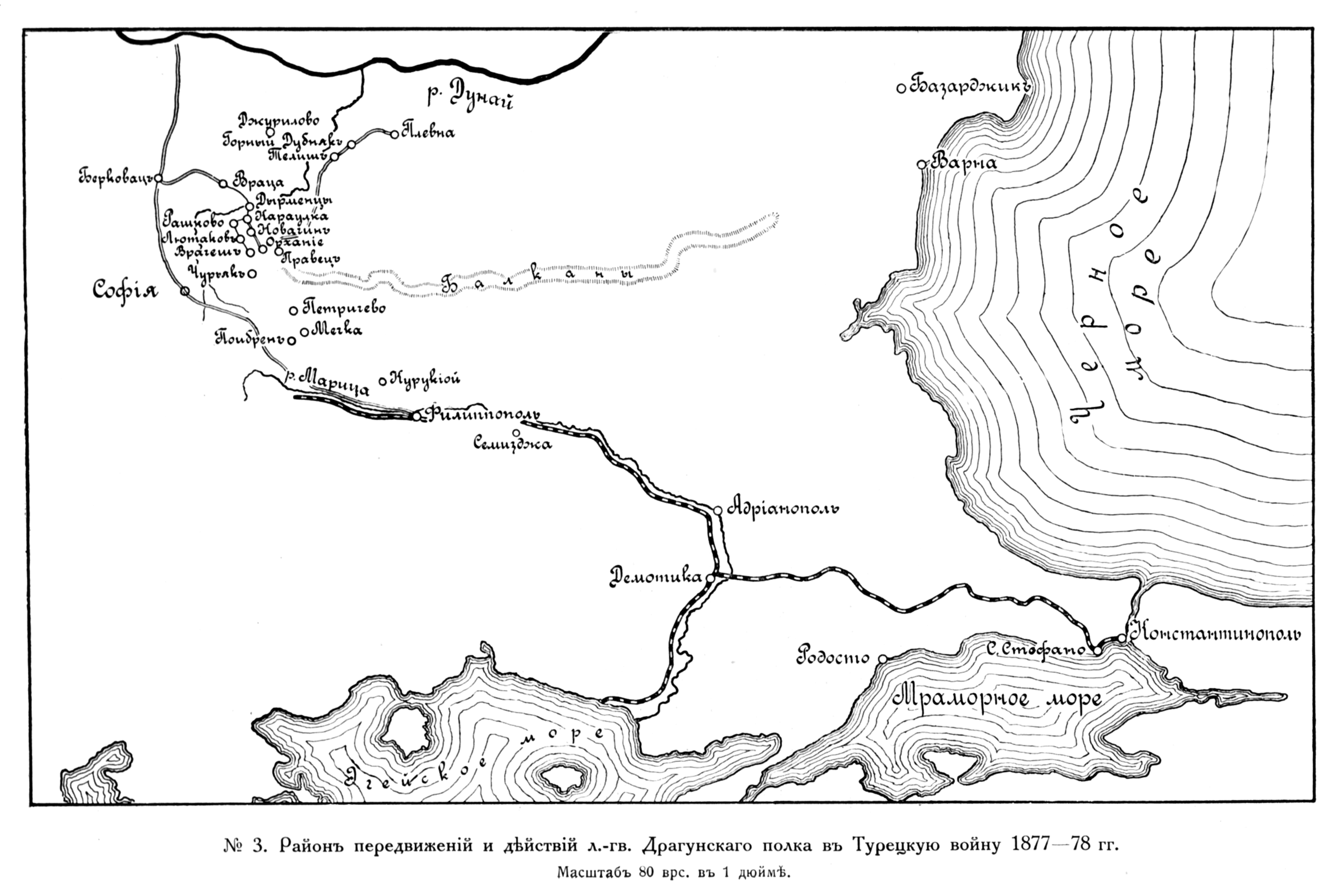 Район передвижений и действий лейб-гвардии Драгунского полка в Турецкую войну 1877-78 годов