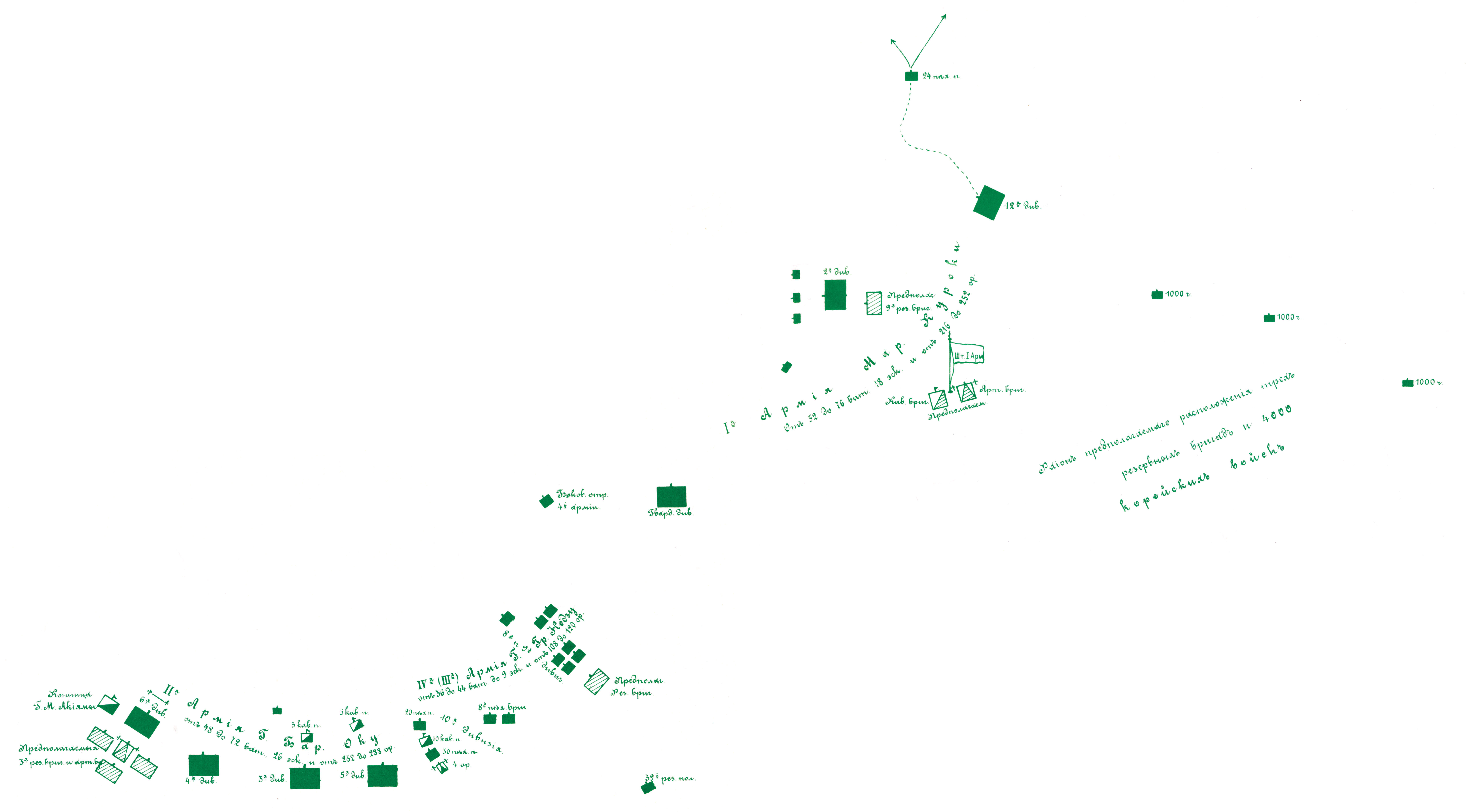 Расположение Японской армии по сведениям Штаба армии к началу июля 1904 года